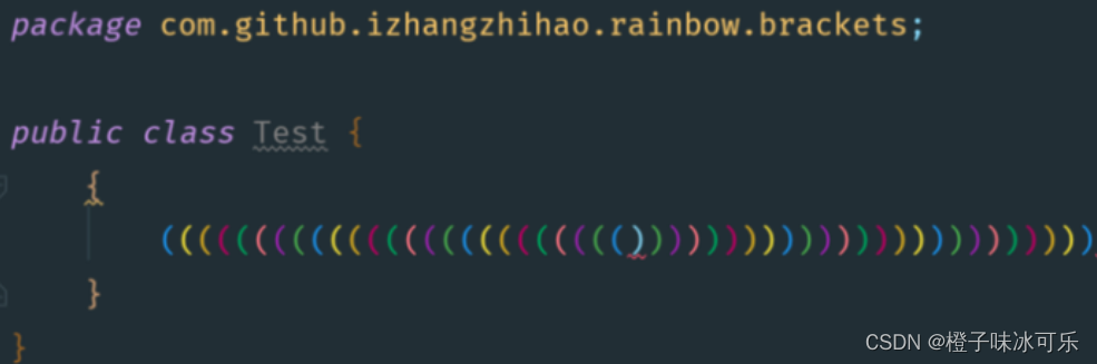 该插件的作用在于能够将括号以不同的颜色标注出来,这个非常的便捷在于我们能够快速地找出到底有哪几个括号是缺失的,如下图所示
