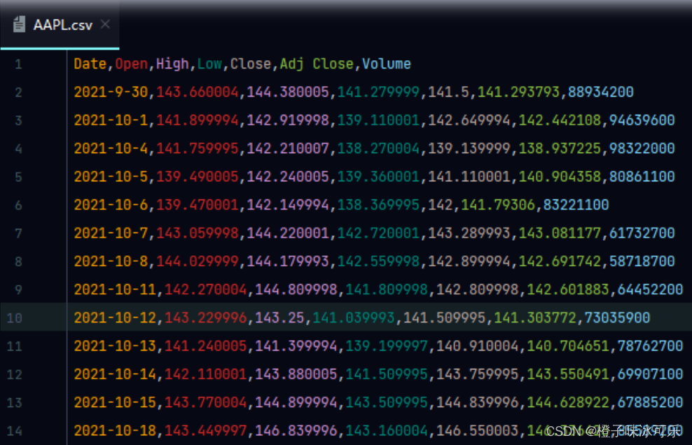 该插件的作用在于能够对CSV文件当中的不同的行都可以用不同的颜色标出,如下图所示