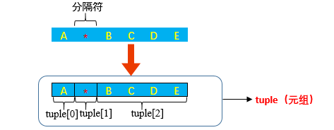 partition()方法根据指定的分隔符将字符串进行分割。如果字符串中包含指定的分隔符,则返回一个3元的元组,第一个为分隔符左边的子字符串,第二个为分隔符本身,第三个为分隔符右边的子字符串,如图1所示。