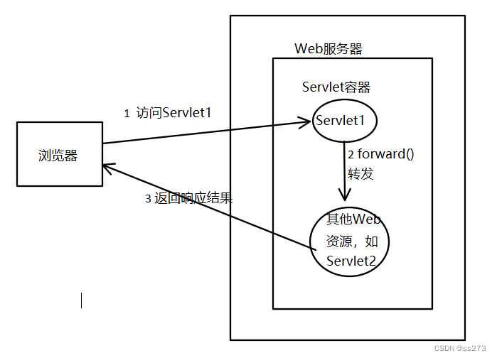 区别:请求转发 客户端只发出了一次请求,到了Servlet1产生过request对象与response对象后即便请求转发到了下一个Servlet2(或者jsp)request及response对象还是没变 重定向 首先客户端发出一个请求到达Servlet1,这时候产生了request对象及response对象,当重定向后浏览器再次向服务器发出一次新的请求,这时候又会产生一个新的request对象和一个新的response对象