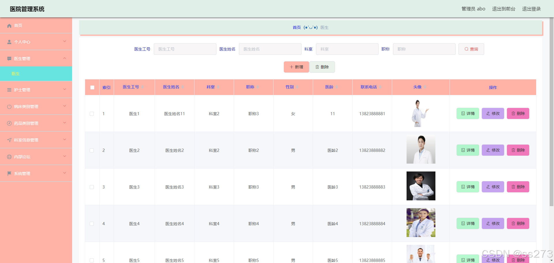 医生管理:对医生信息进行添加、修改、删除等操作。
