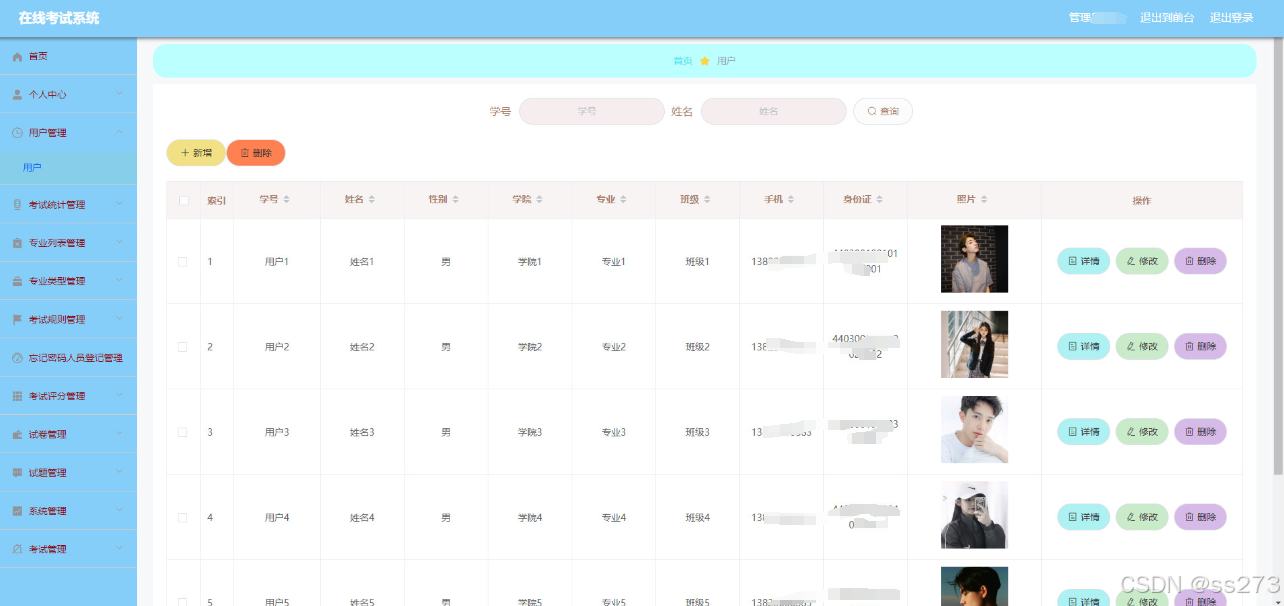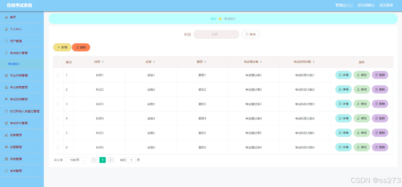 考试统计管理:管理员可以对考试统计进行添加、修改、删除以及查询操作。