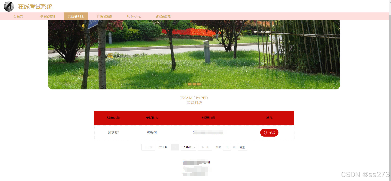 试卷列表:用户可以查看试卷列表,选择需要参加的考试。