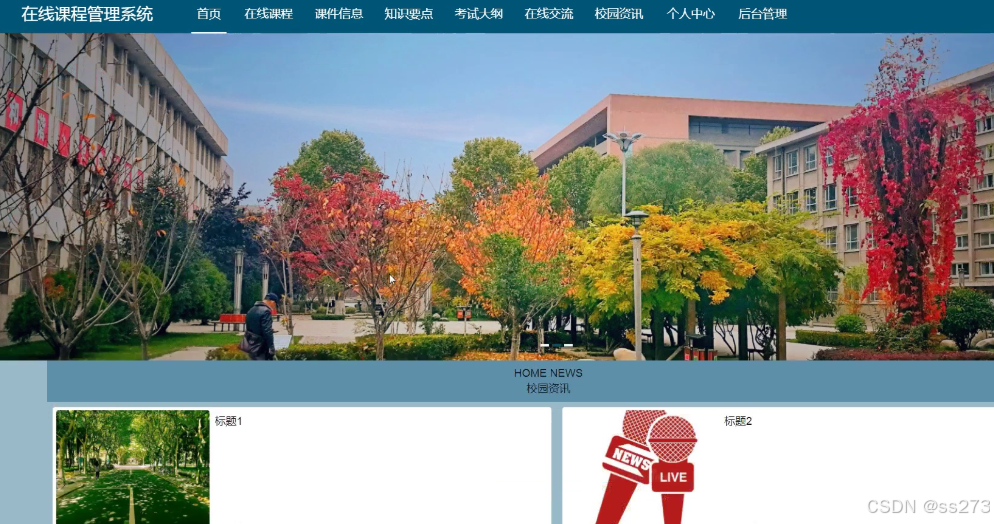 管理员:个人中心、学生管理、教师管理、在线课程管理、课件信息管理、知识要点管理、教学计划管理、考试大纲管理、科目类型管理、班级分类管理、通知公告管理、在线交流、系统管理。
