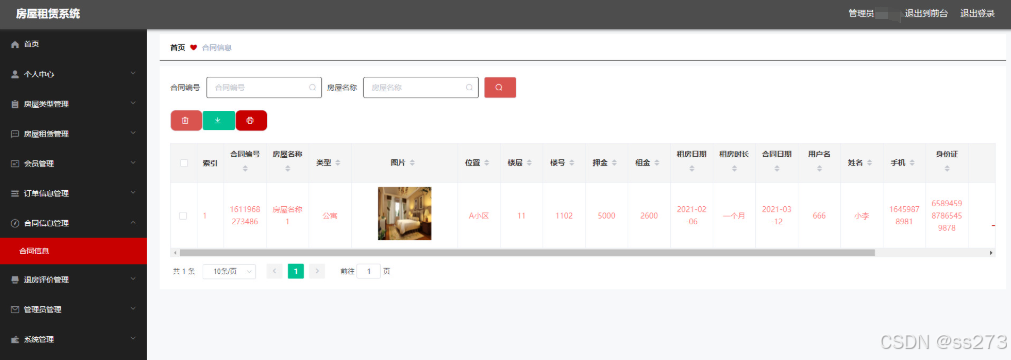 合同信息管理:创建、查看租赁合同,并确保租客遵守合同条款。