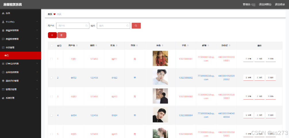 会员管理:管理房东和租客的账户信息,包括注册信息、权限设置等。