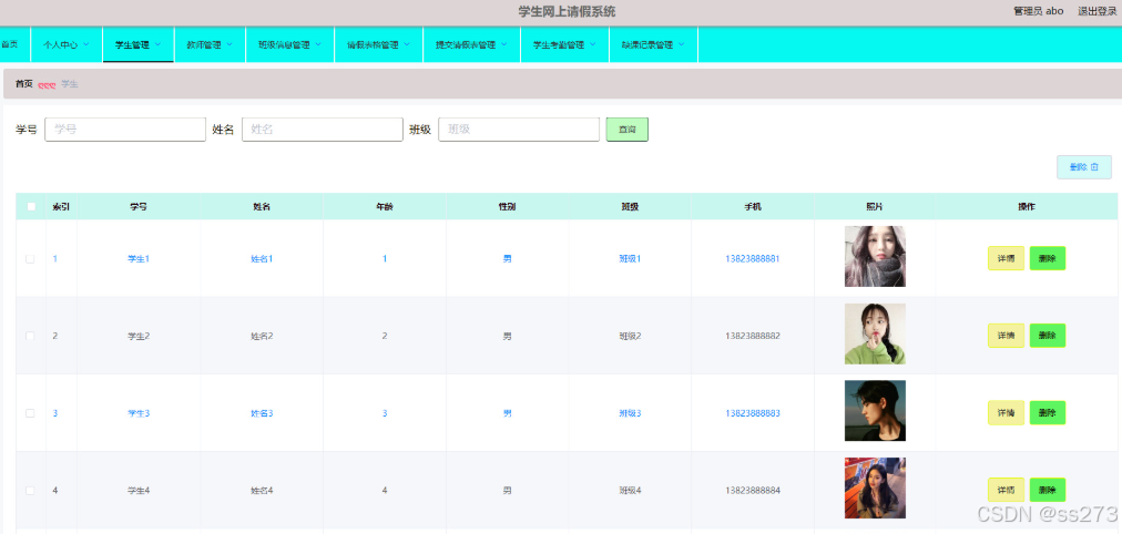 查看和管理班级信息。请假表格管理功能:对请假表格进行查看和管理。
