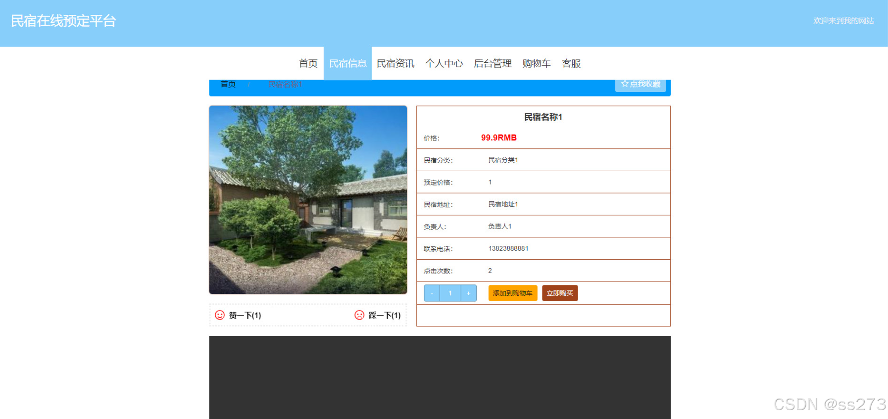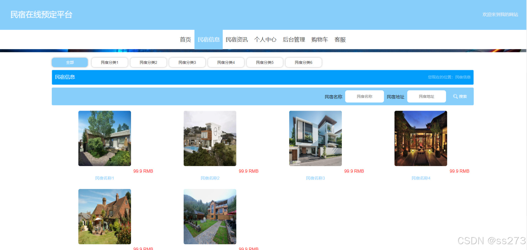 民宿信息浏览:用户可以查看民宿的详细信息,包括图片、价格、地址等。
