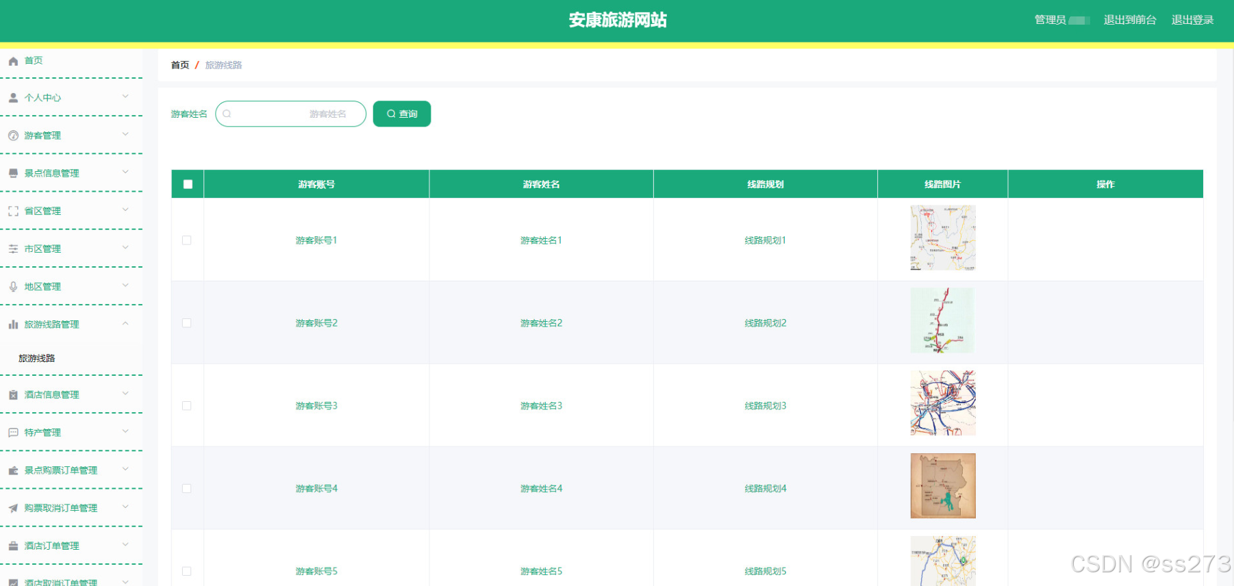 旅游线路管理:游客可以查看和管理旅游线路信息。