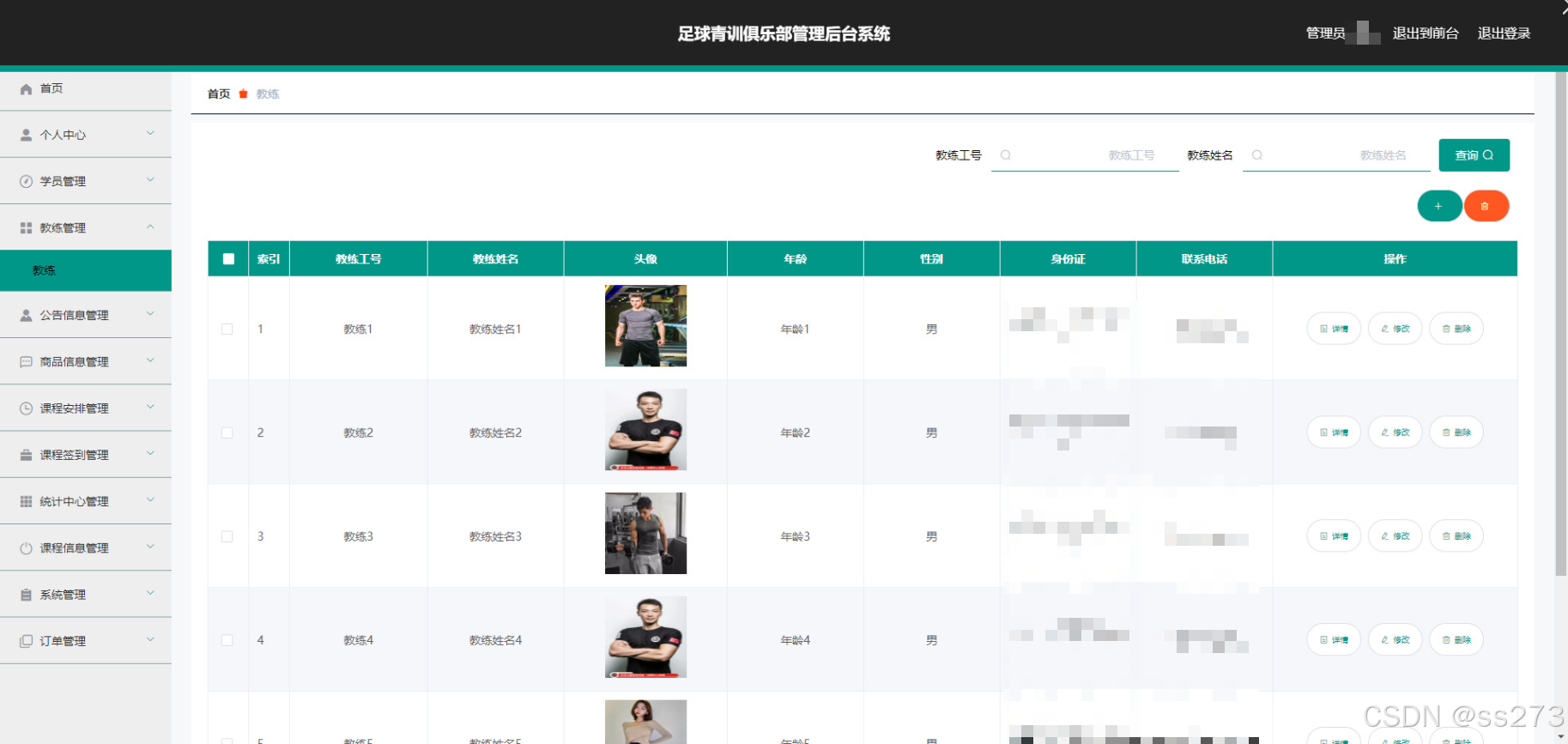 管理员角色:全面系统管理,包括个人信息维护;管理学员信息、教练信息;公告信息管理、商品信息管理;课程安排与签到管理;统计中心查看;系统设置调整以及订单管理。管理员拥有最高权限,可查看和操作所有后台数据,确保系统正常运作。