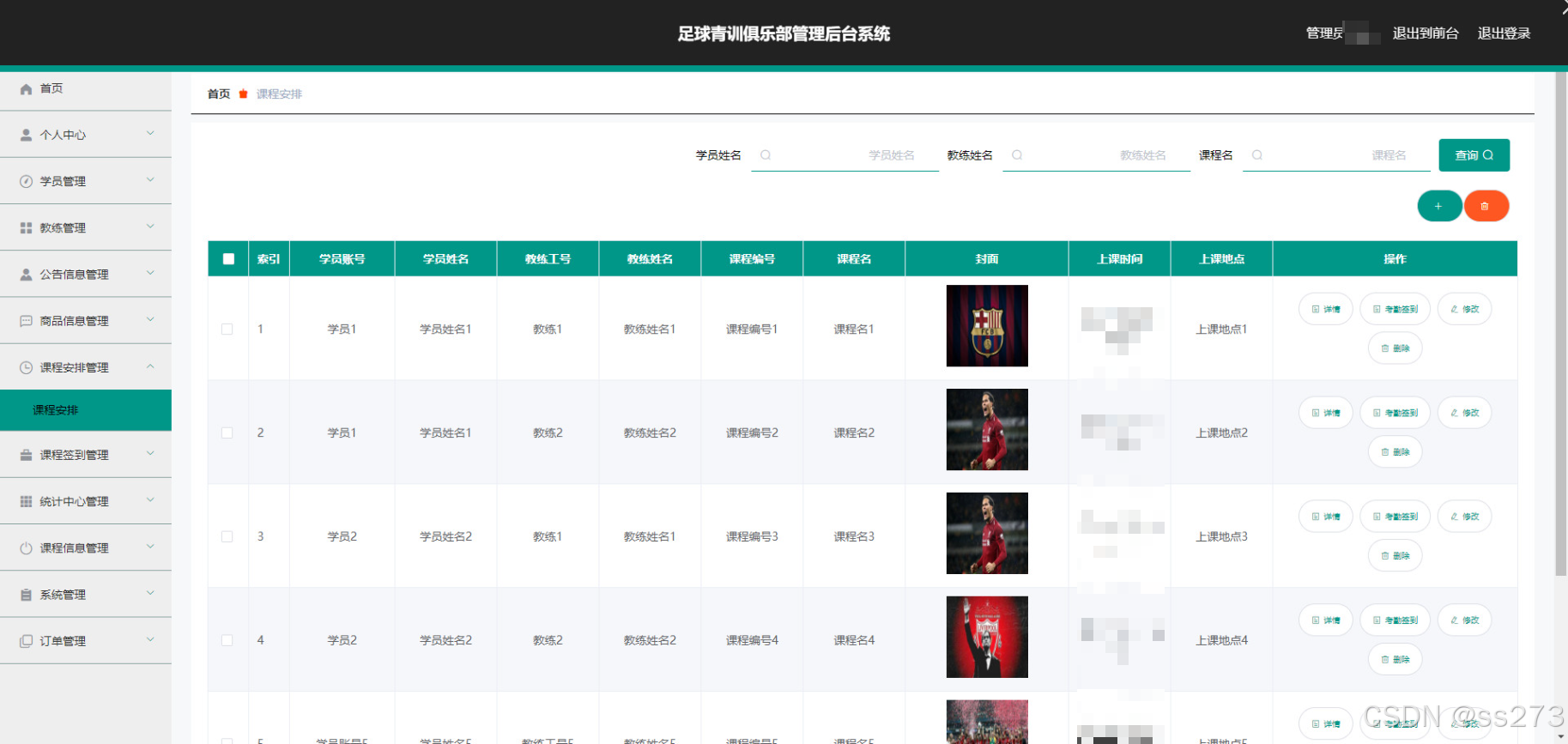 学员角色:查看系统信息、公告信息、商品信息、课程安排;注册操作;登录后可进行购物车管理、上课签到、个人中心信息维护、管理我的订单及地址信息。