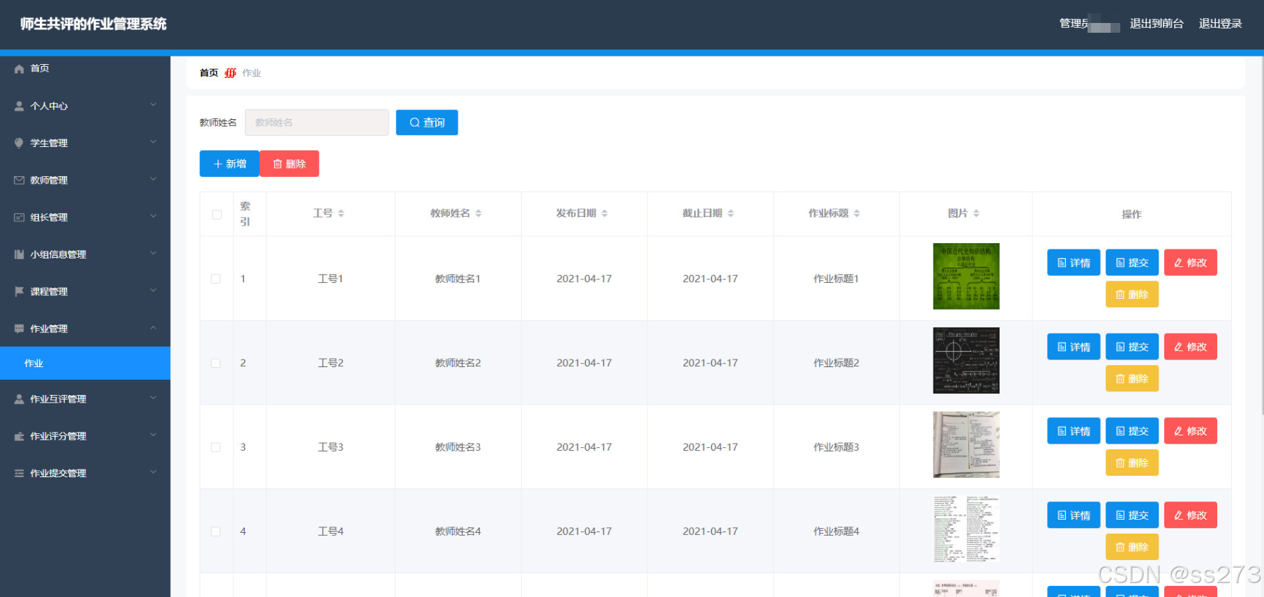 作业管理:教师可以发布作业、查看作业提交情况,对作业内容进行管理。