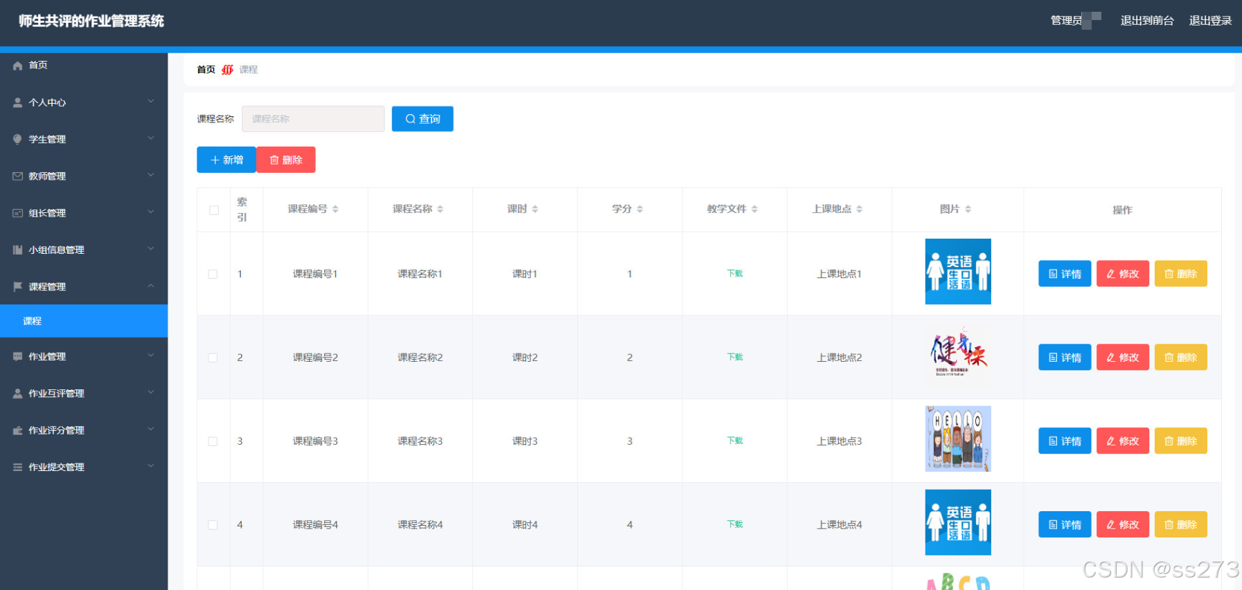 课程管理:教师可以管理课程信息,如添加、修改课程详情。