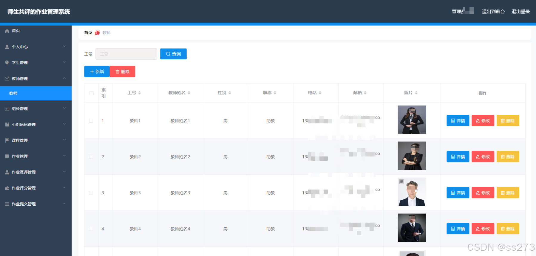 小组信息管理:教师可以对小组的信息进行管理,包括创建小组、分配小组成员等。
