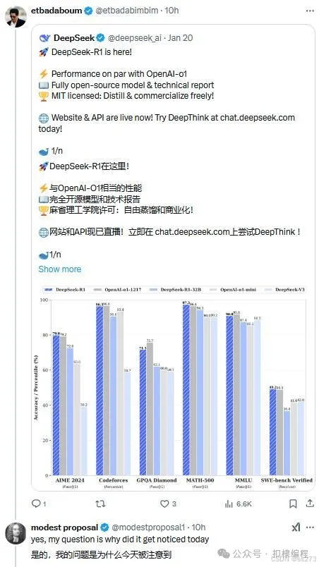 DeepSeek,这家神秘的AI公司,将几亿成本完成的大模型,压缩到几百万成本。据说Meta公司的大模型一个高管的工资都不止几百万,英伟达股价下跌也受DeepSeek影响。该公司近年来在全球AI领域引起了广泛关注,其最新的DeepSeek-R1模型在数学、代码、自然语言推理等多个领域展现出了与OpenAI的O1模型相媲美的实力。这一成就不仅令国内AI界震惊,也让国际同行刮目相看。