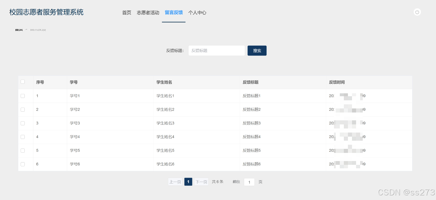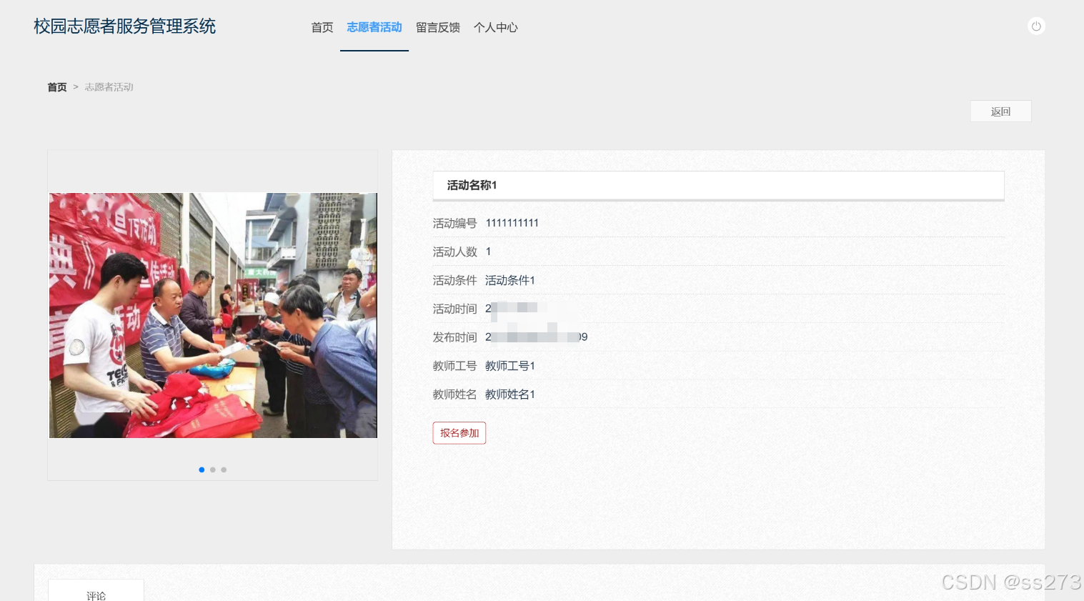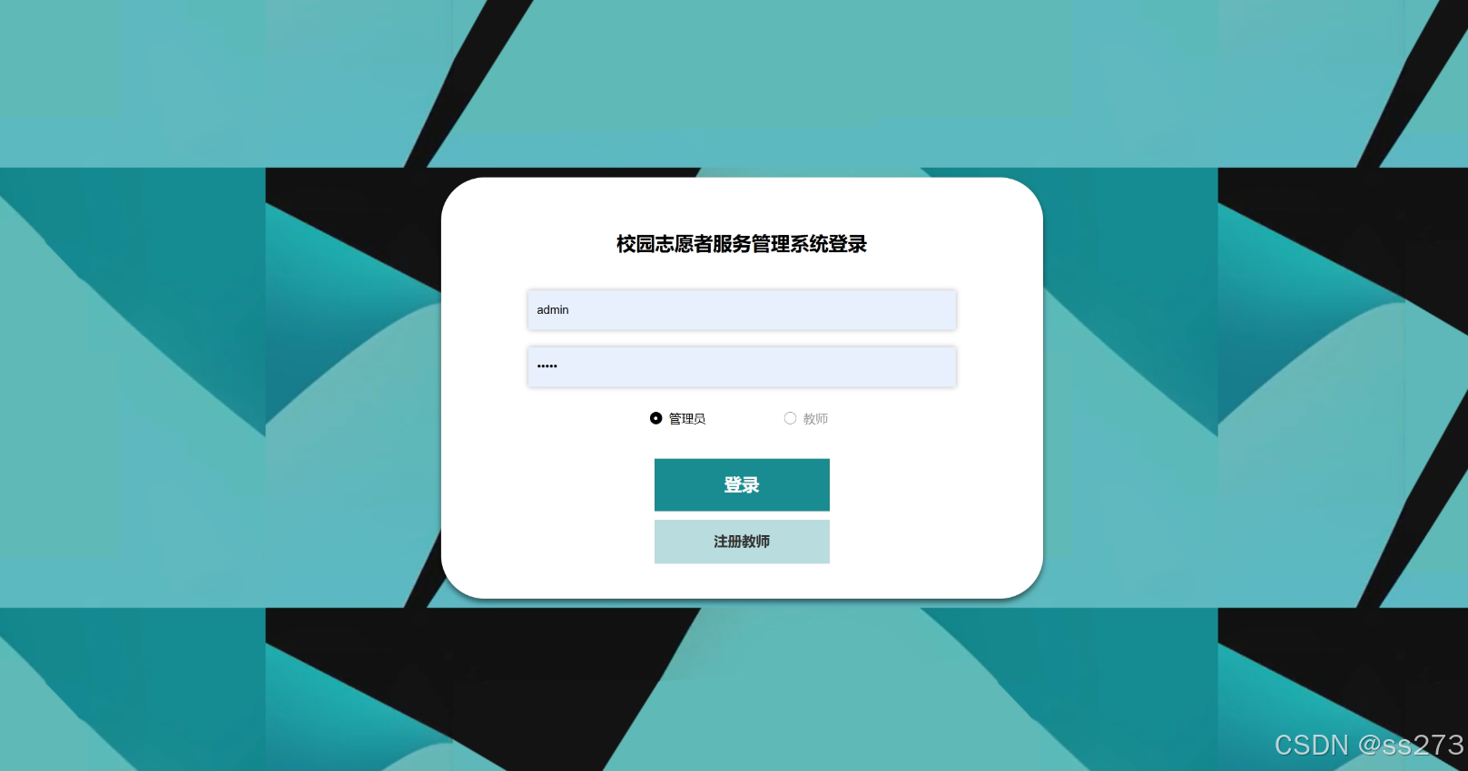管理员:登录、轮播图管理、管理员管理、教师管理、学生管理、志愿者活动管理、活动参加管理、积分管理、留言反馈管理等。