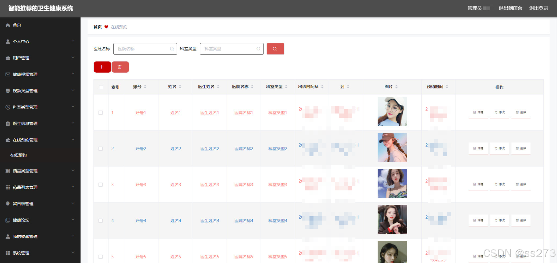 在线预约管理:管理员可以对在线预约信息进行管理。