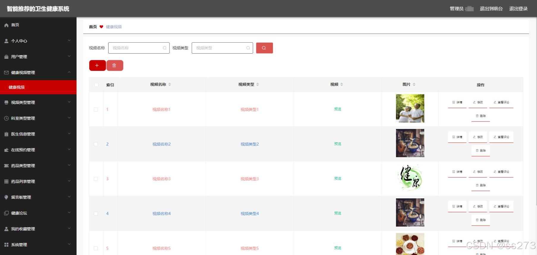 视频类型管理:用户可以浏览不同类型的健康视频。