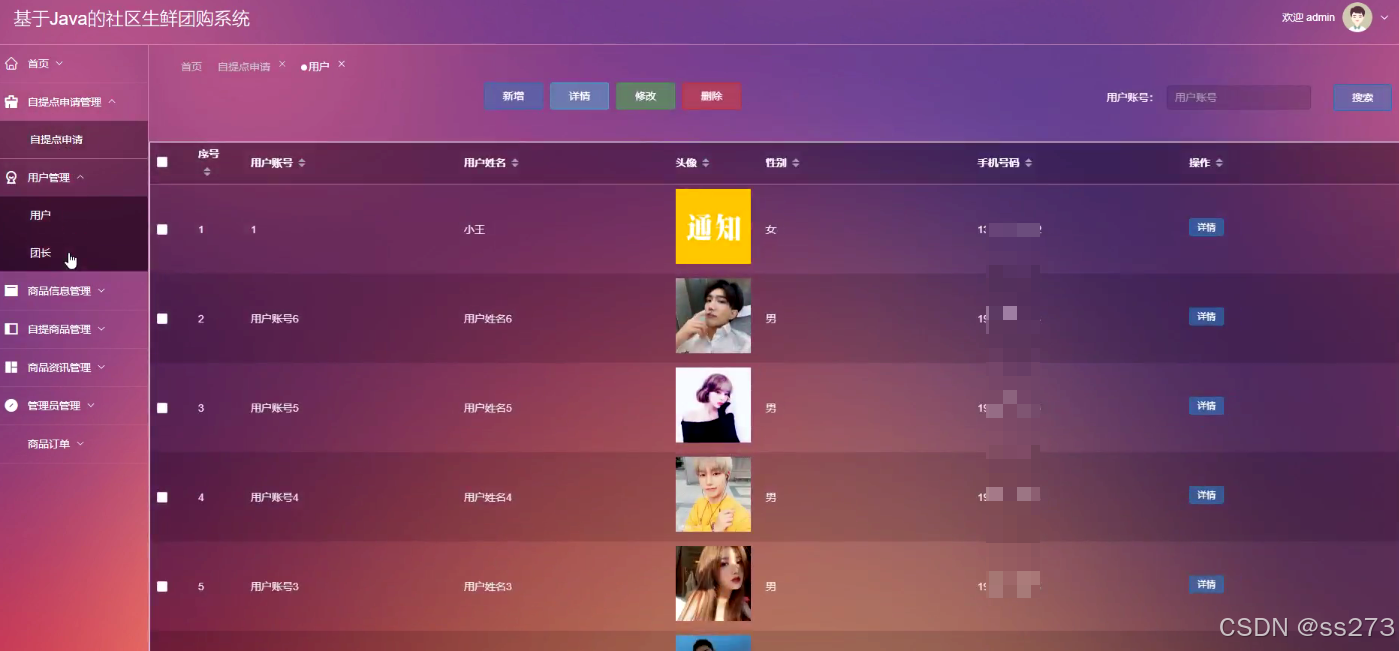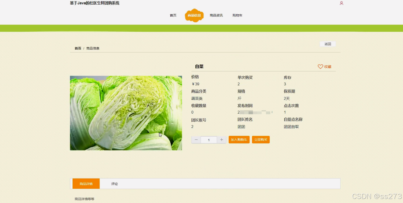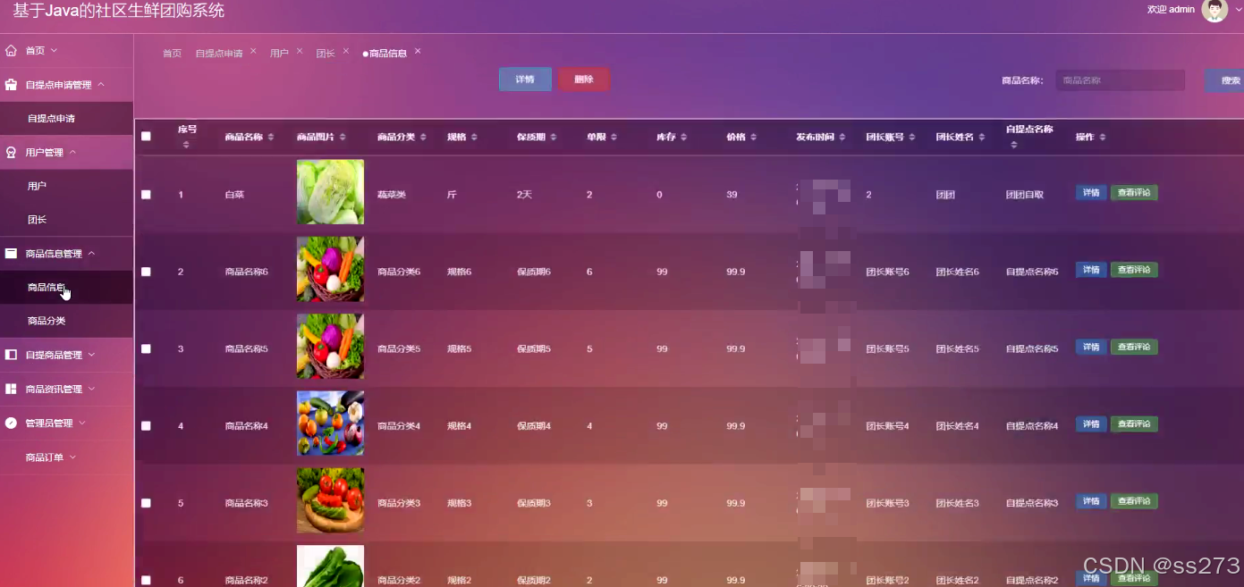 商品信息管理:团长可以管理商品信息,包括新增、修改、查看评论和删除。