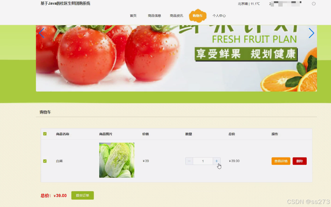 购物车管理:用户可以将商品加入购物车,并进行数量调整和提交订单。