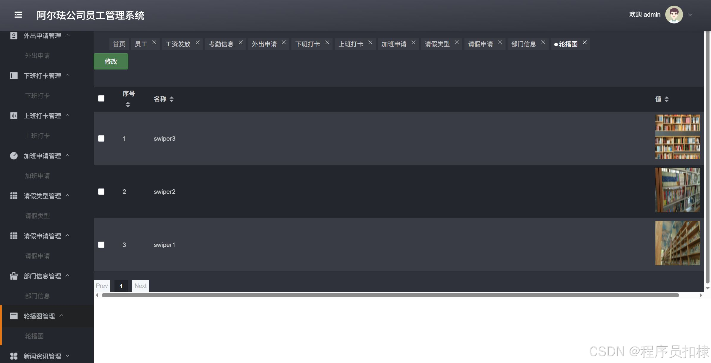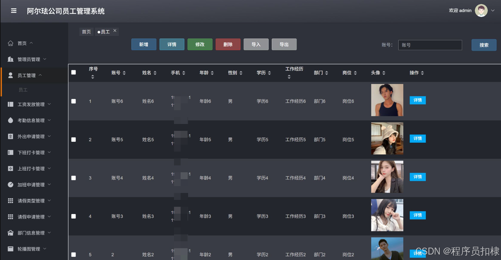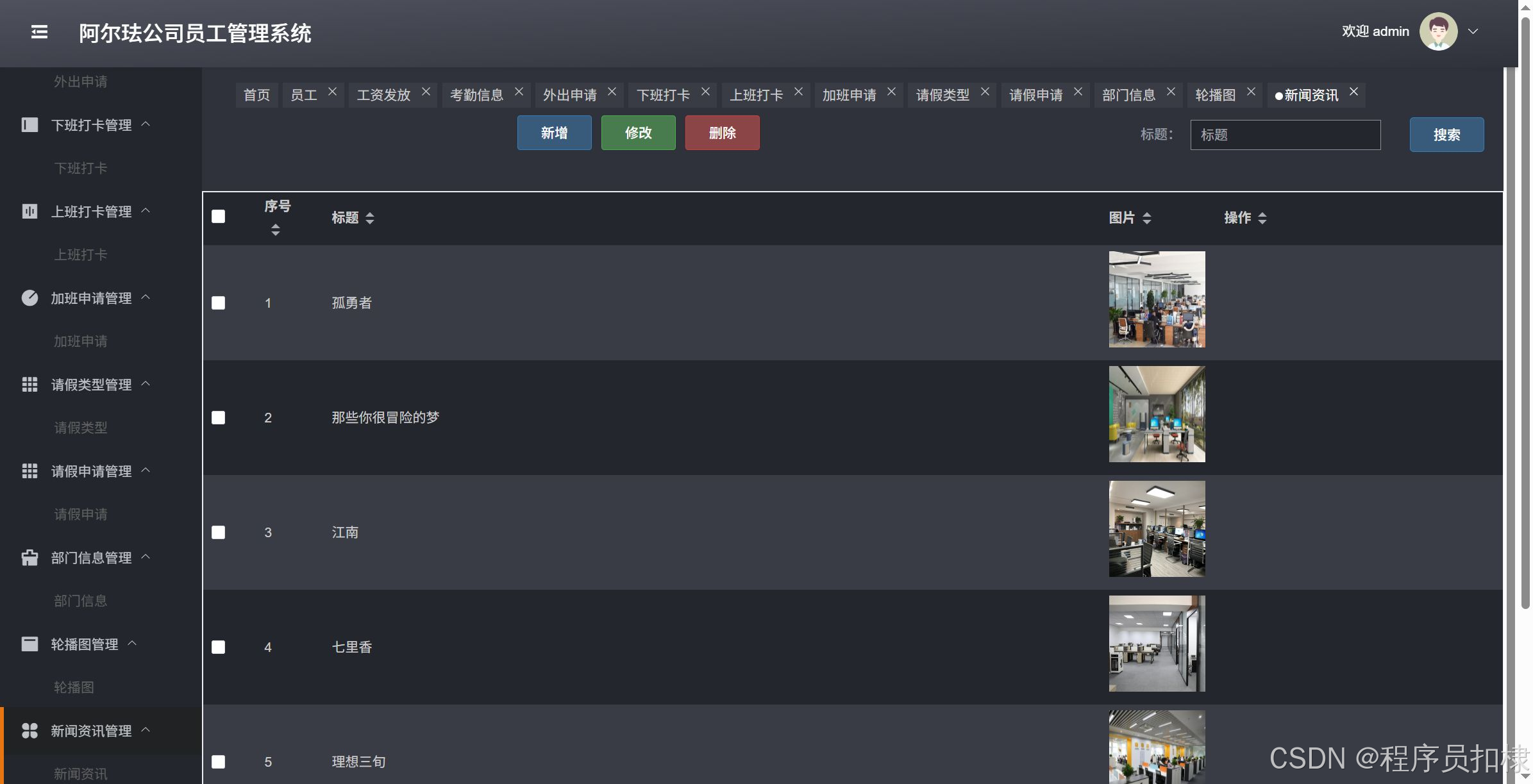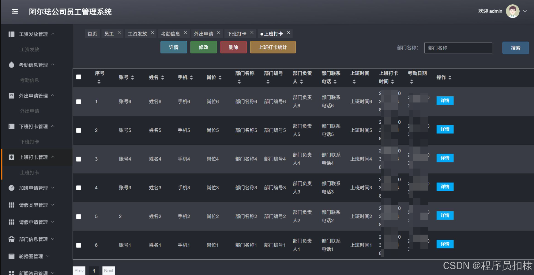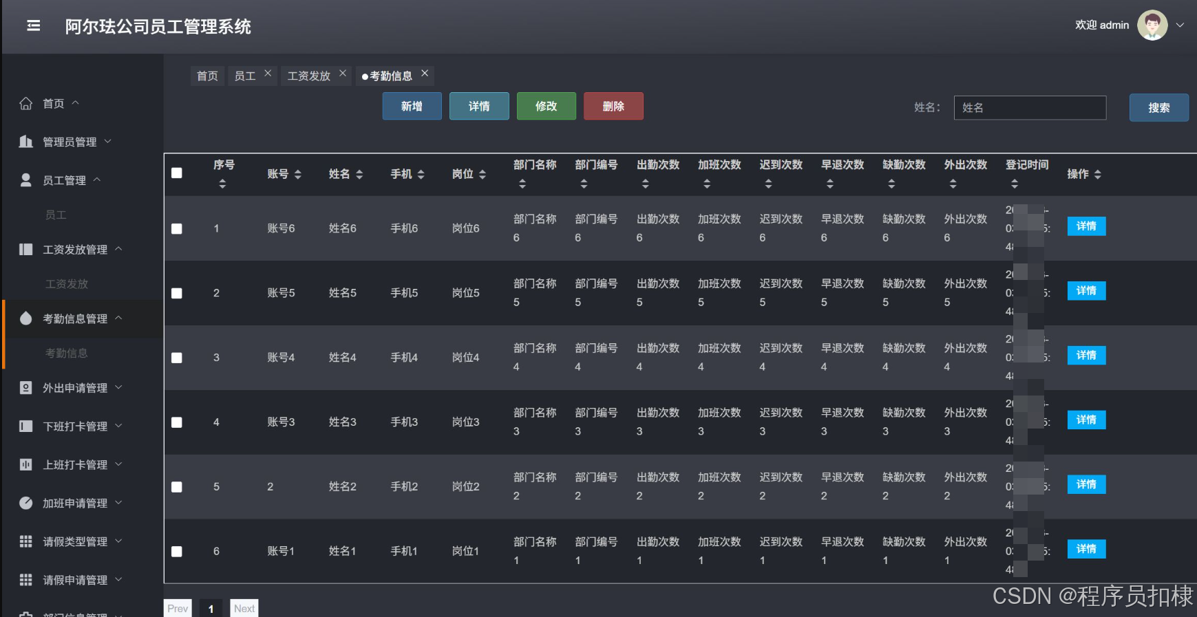 考勤信息管理:管理员工的考勤信息,包括查看、修改、删除考勤记录。