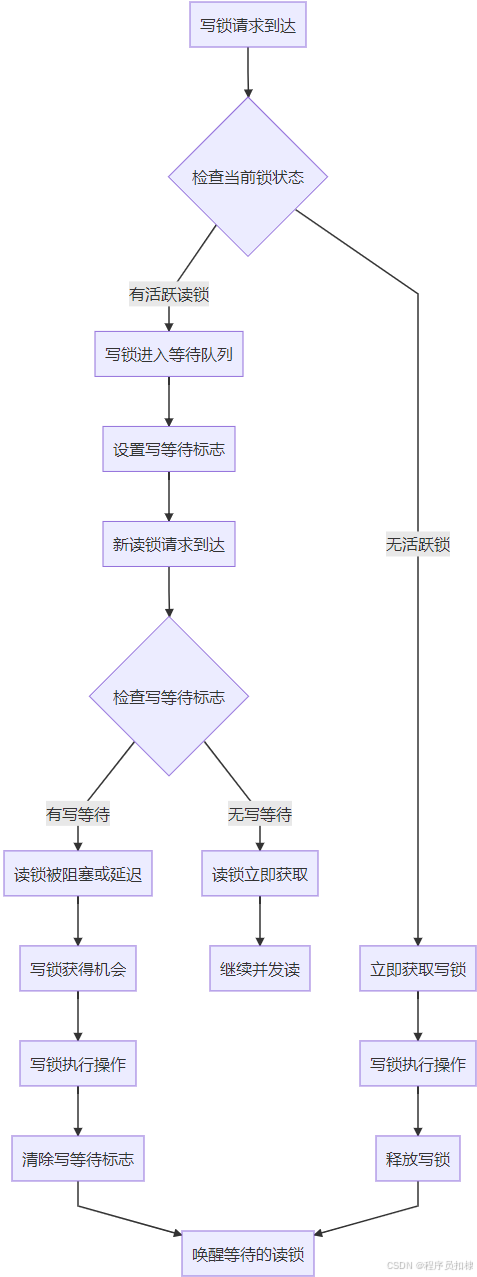 写锁饥饿是指在高并发读场景下,写线程长时间无法获得执行机会的现象。其根本原因在于读写锁的基本规则:读锁共享,写锁独占。