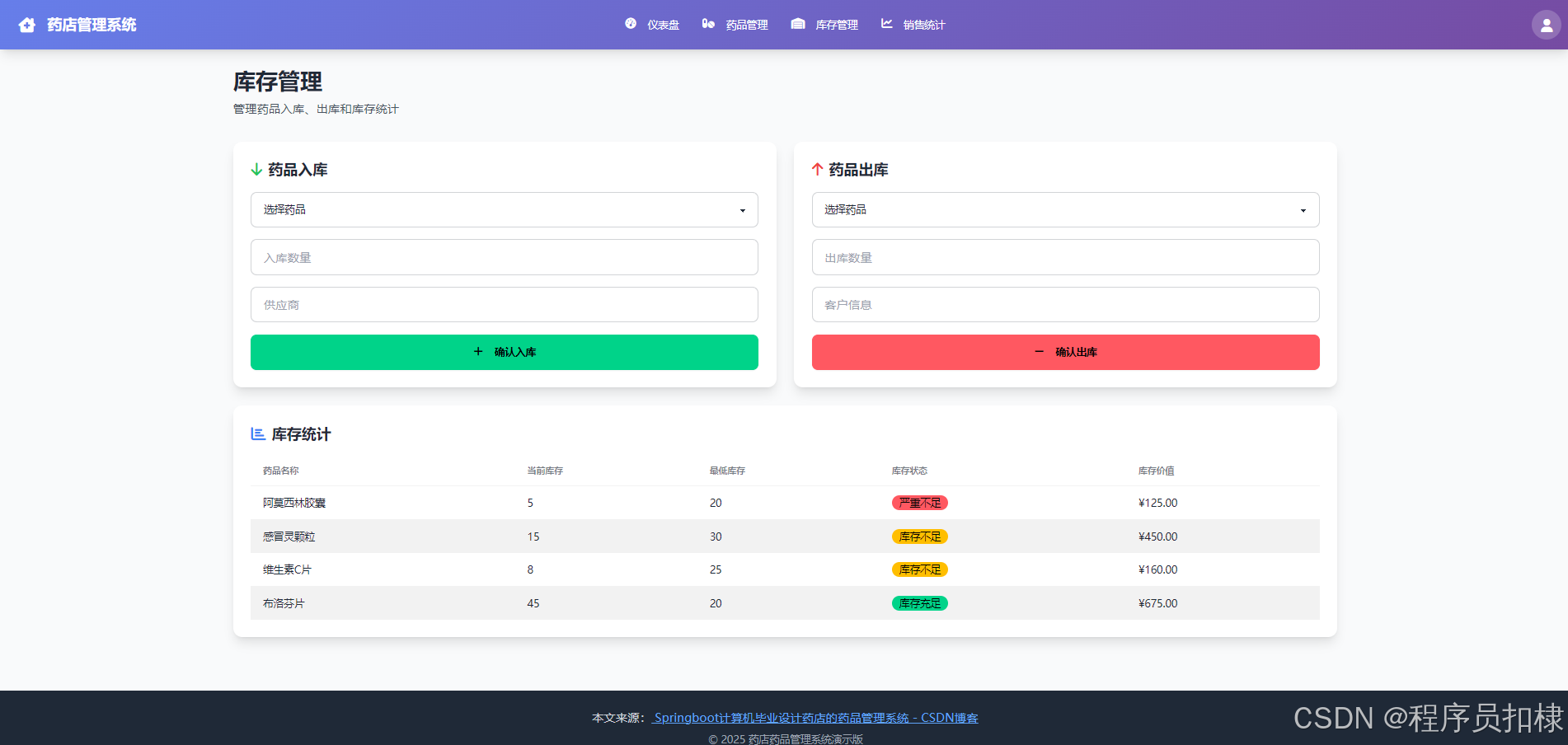 - 库存状态标识:根据库存数量自动显示"库存充足"、"库存不足"或"严重不足"状态