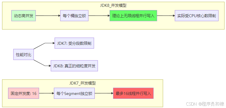 并发度固定:默认16个Segment,无法动态扩展