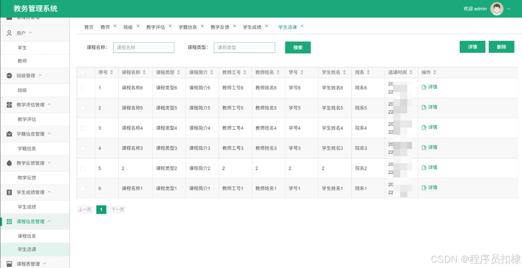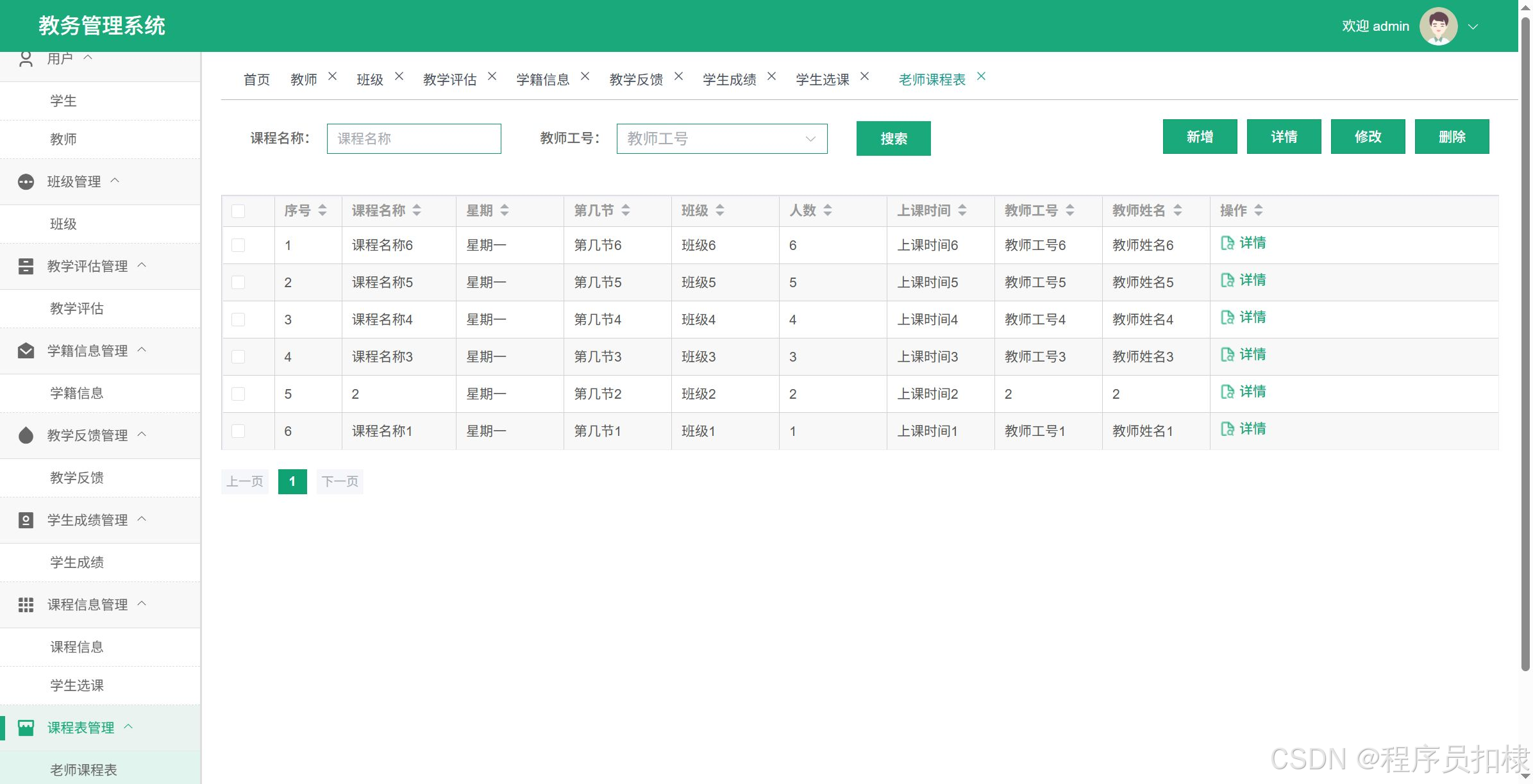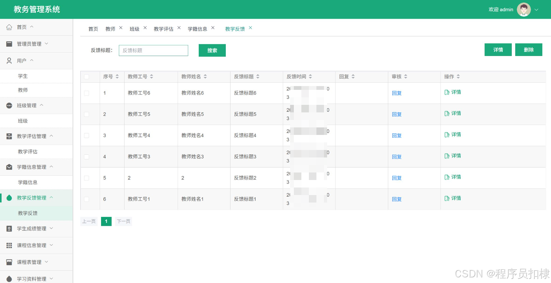 教学反馈管理:新增、查看、修改和删除教学反馈信息。