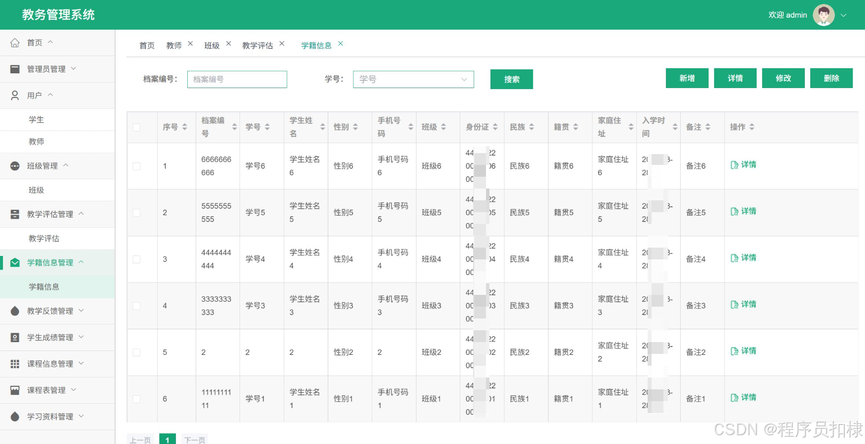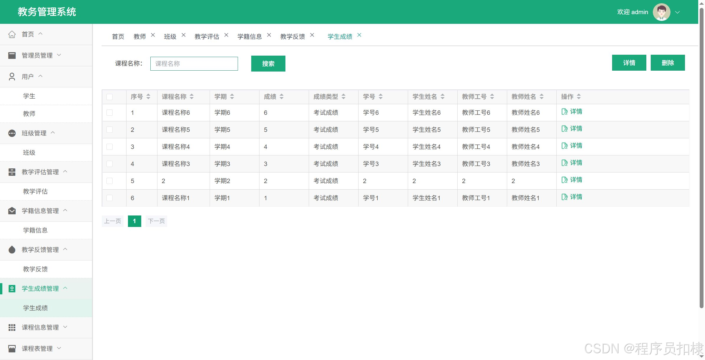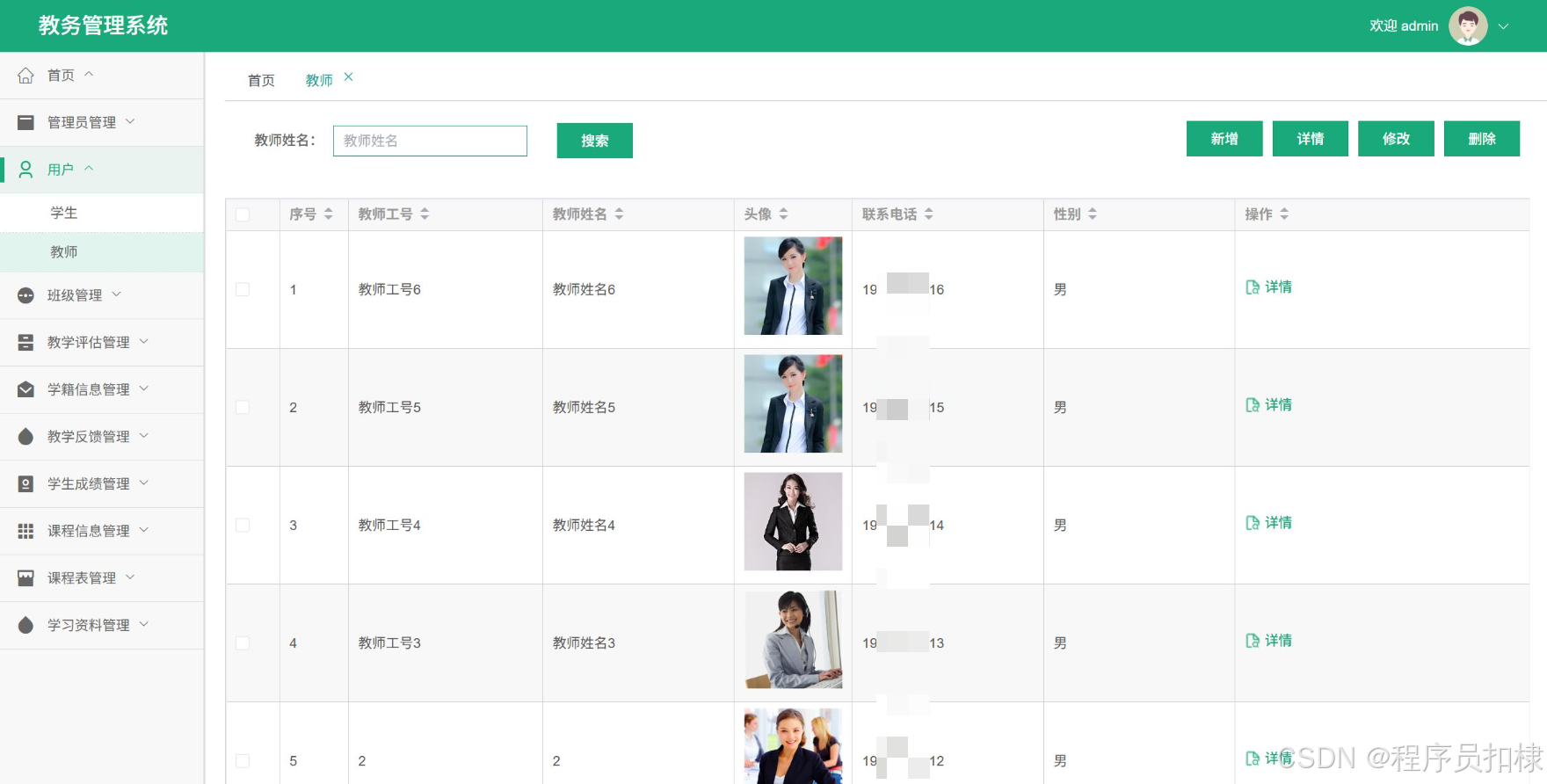 教学反馈管理:新增、查看、修改和删除教学反馈信息。