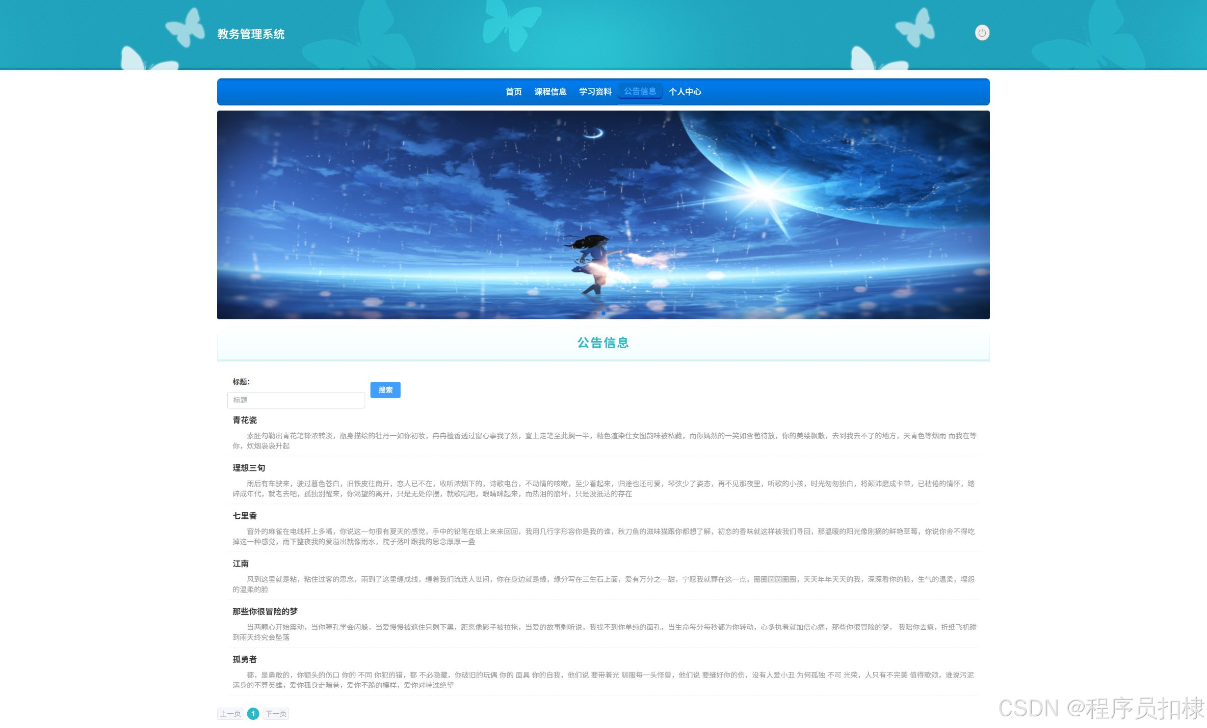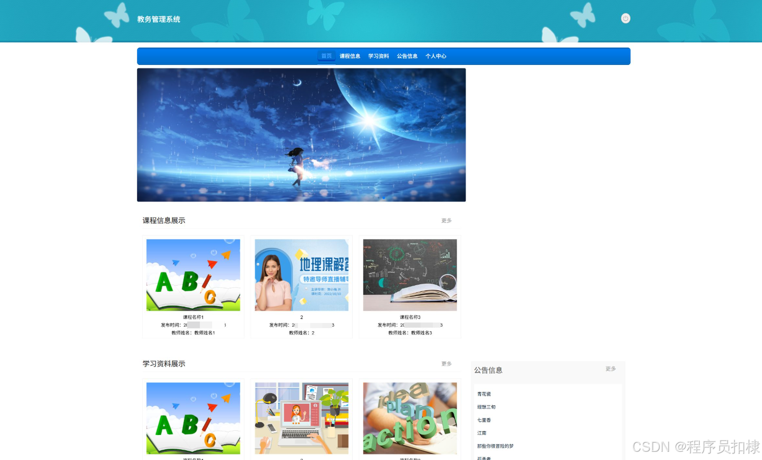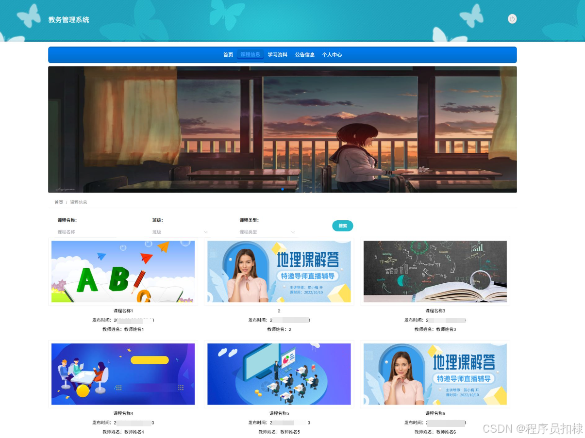 课程信息管理:管理课程信息,包括课程名称、类型、简介等。