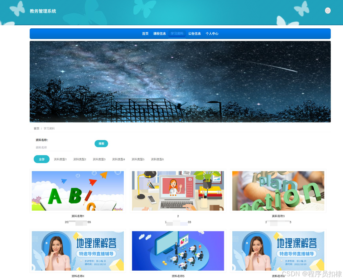学习资料管理:管理学习资料,包括资料名称、类型、简介等。