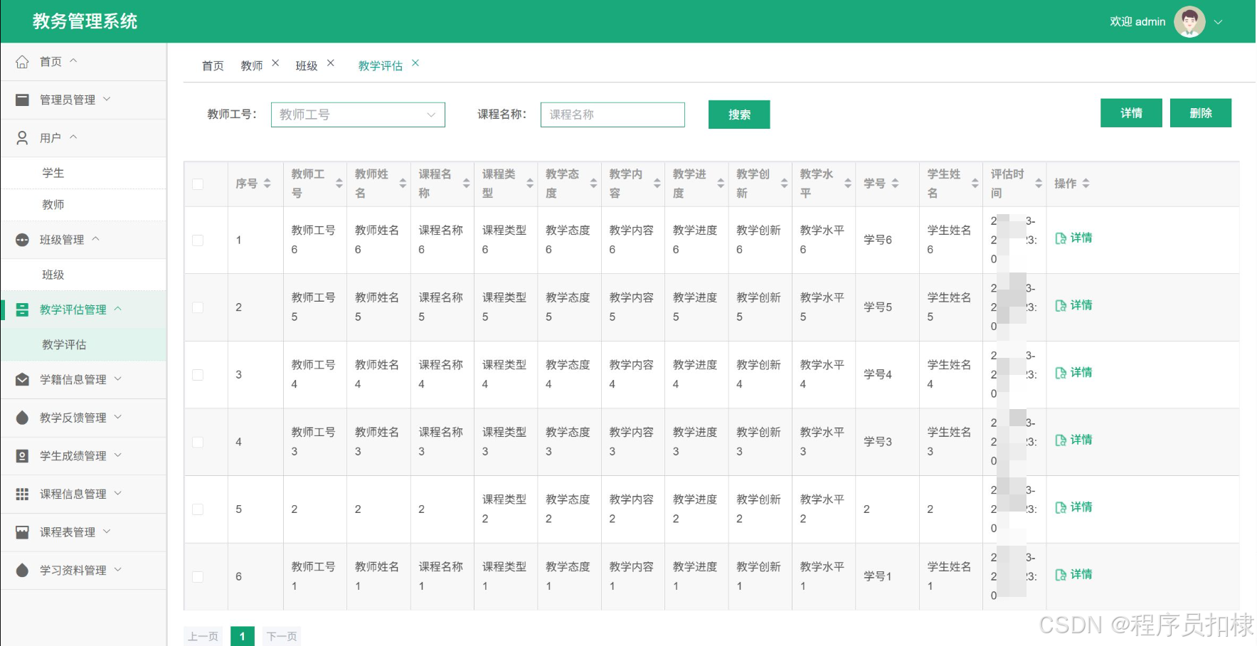 教学评估管理:新增、查看、修改和删除教学评估信息。