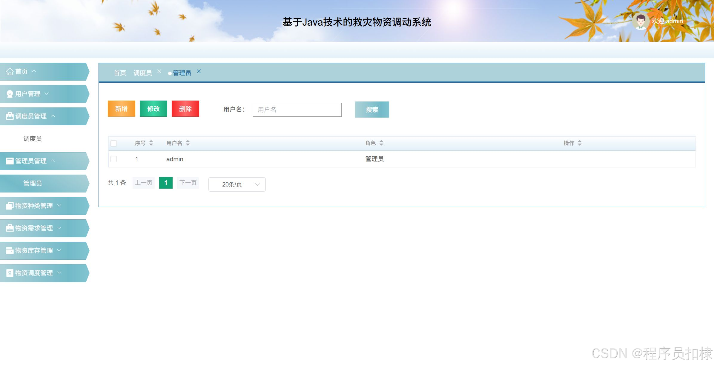 物资库存管理:调度员可以查看物资库存的信息。