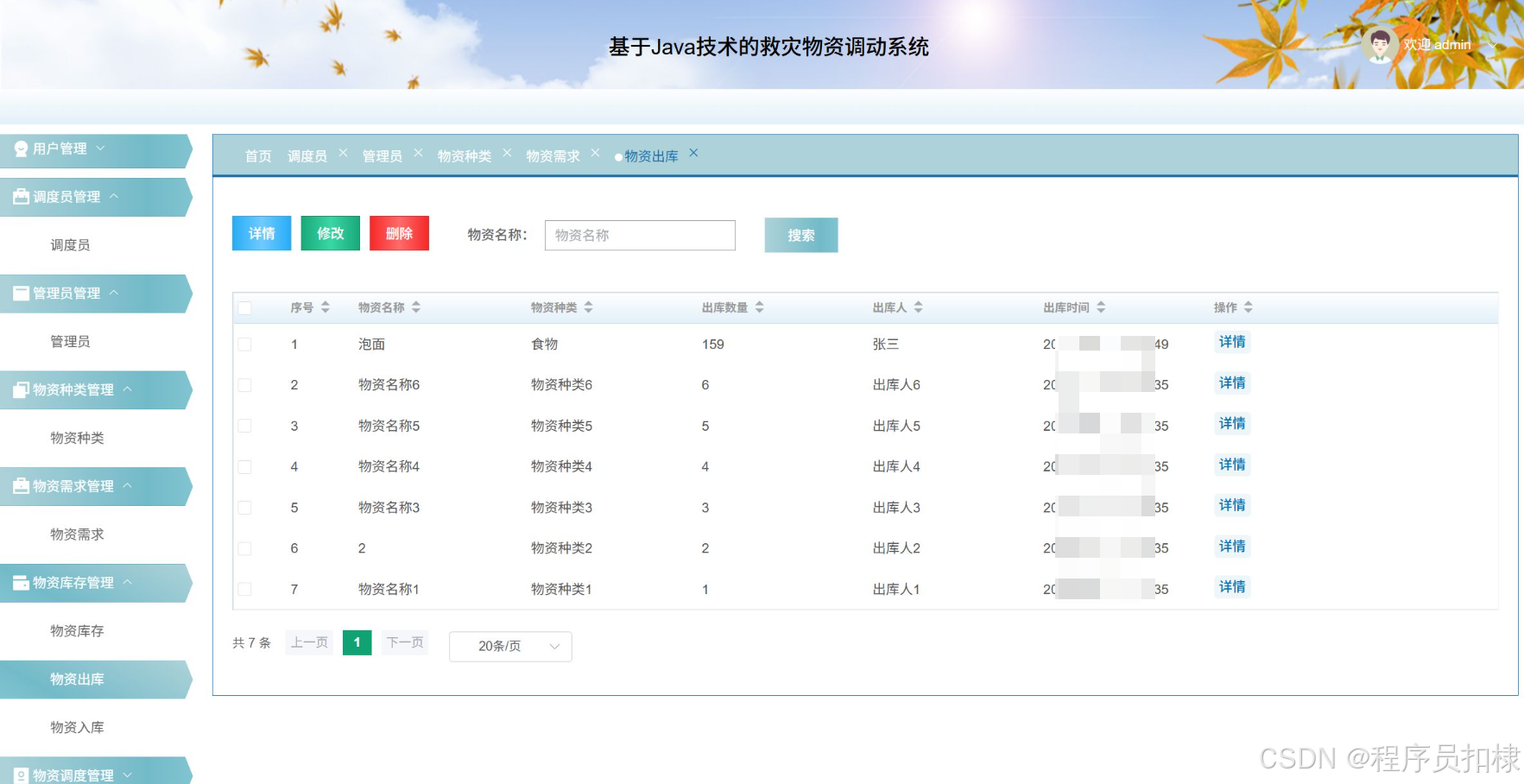 物资调度管理:管理物资调度的信息,包括查看、修改、删除和更新进度。