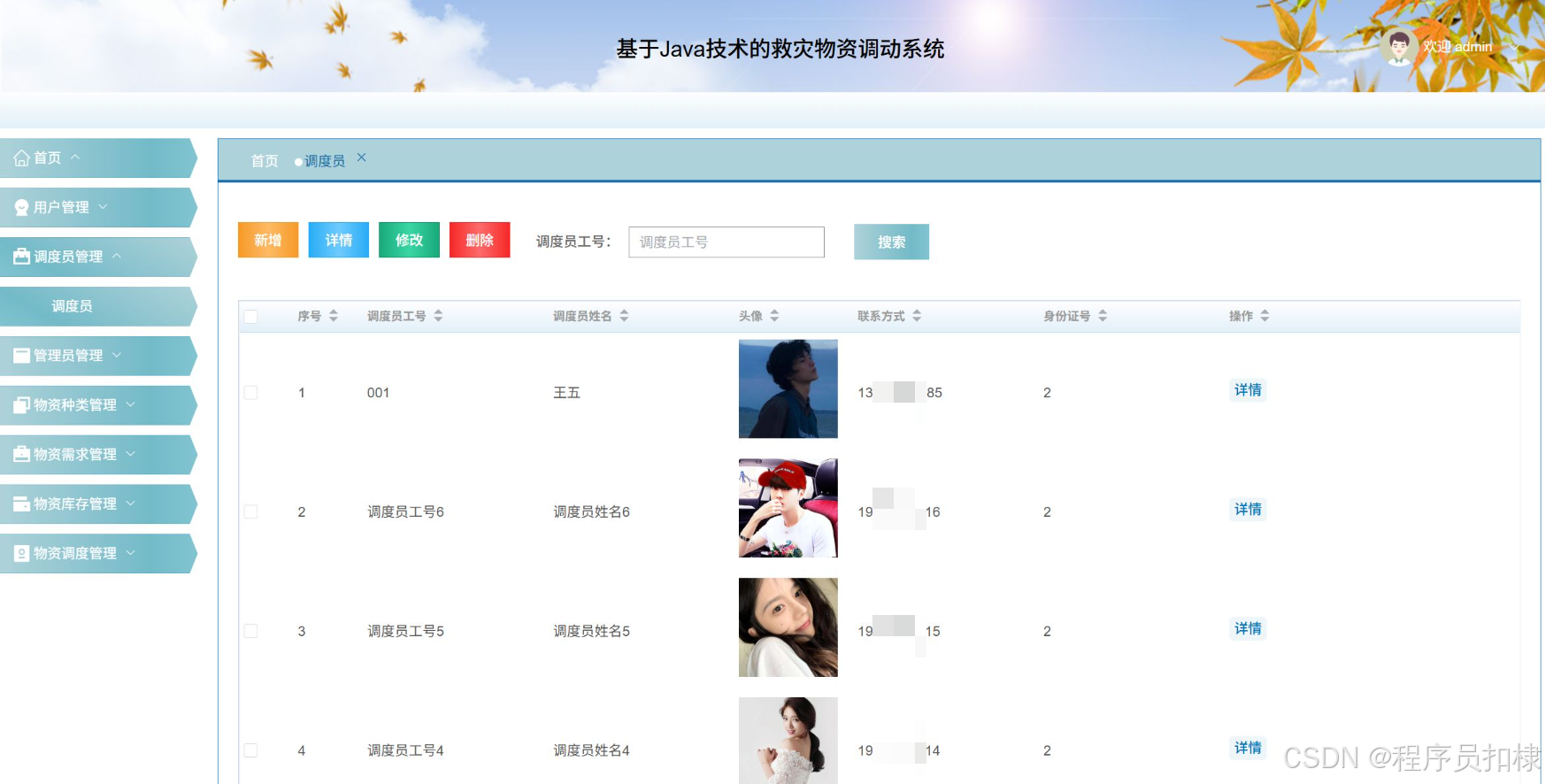 物资调度管理:调度员可以查看、更新进度、删除和修改物资调度的信息。