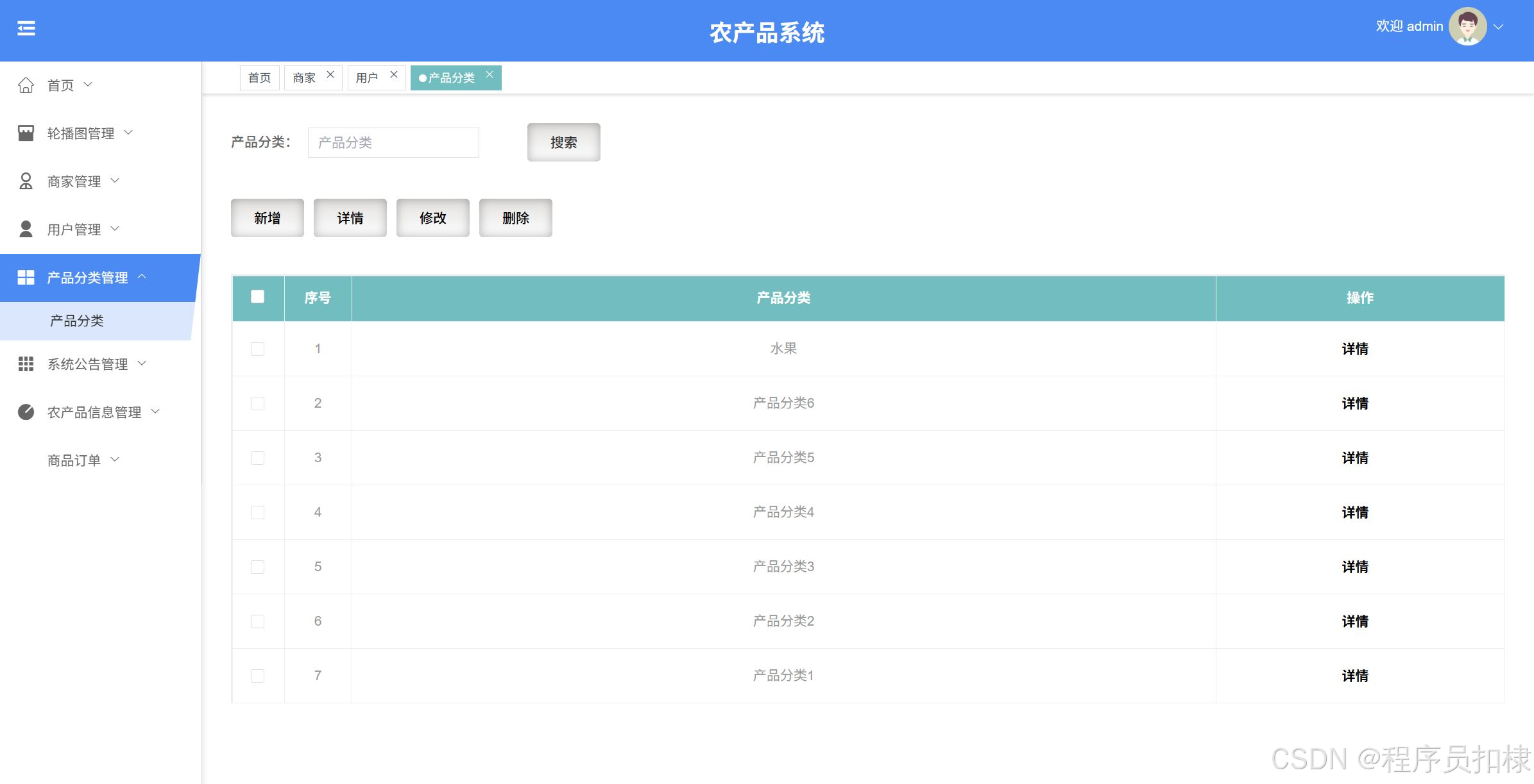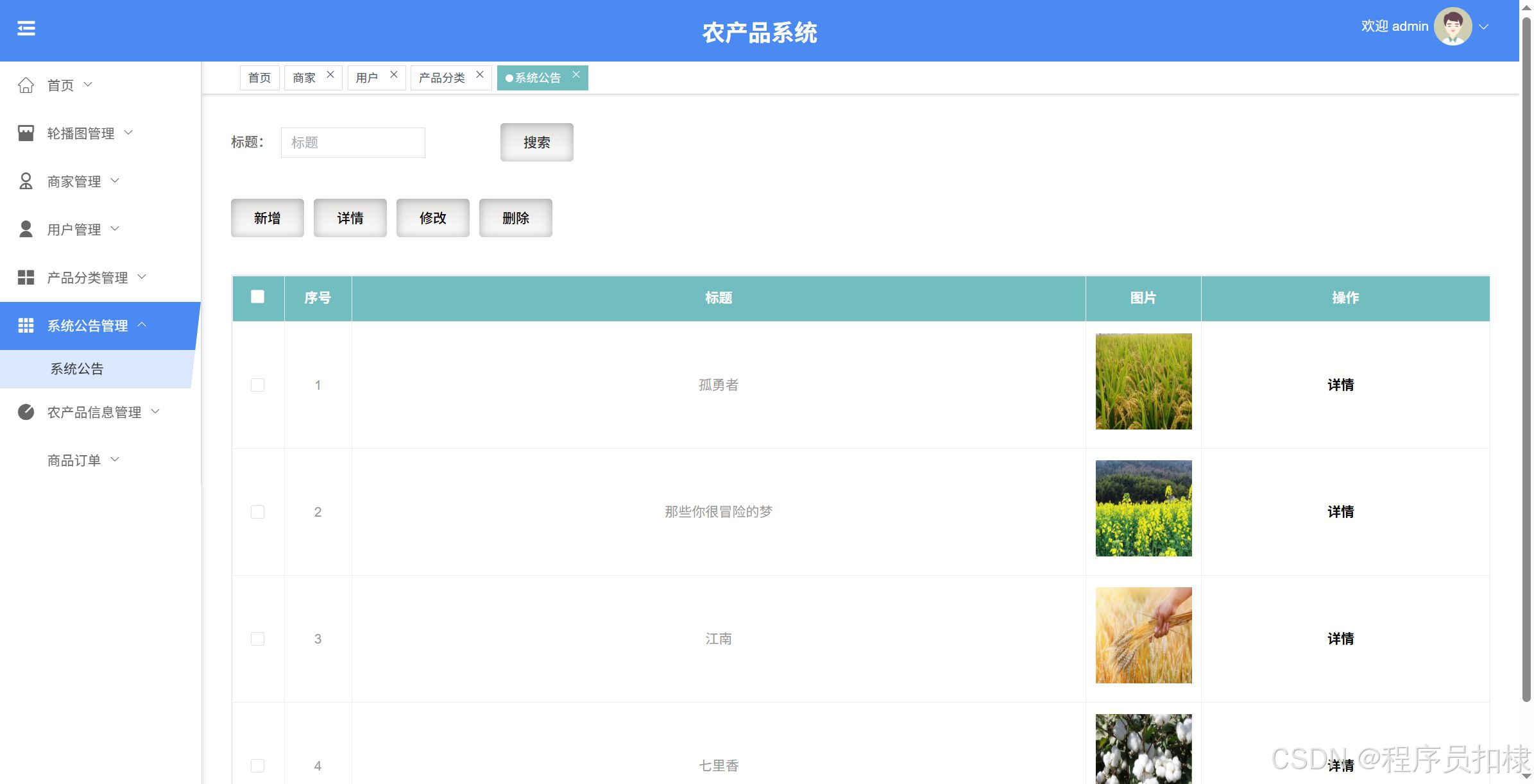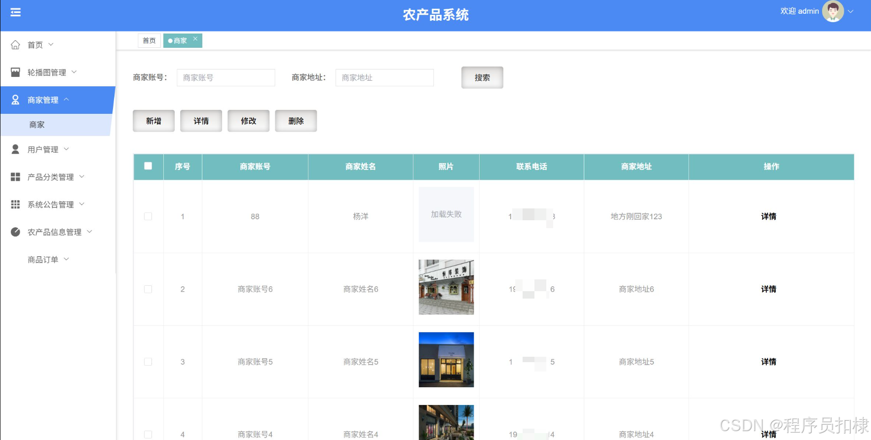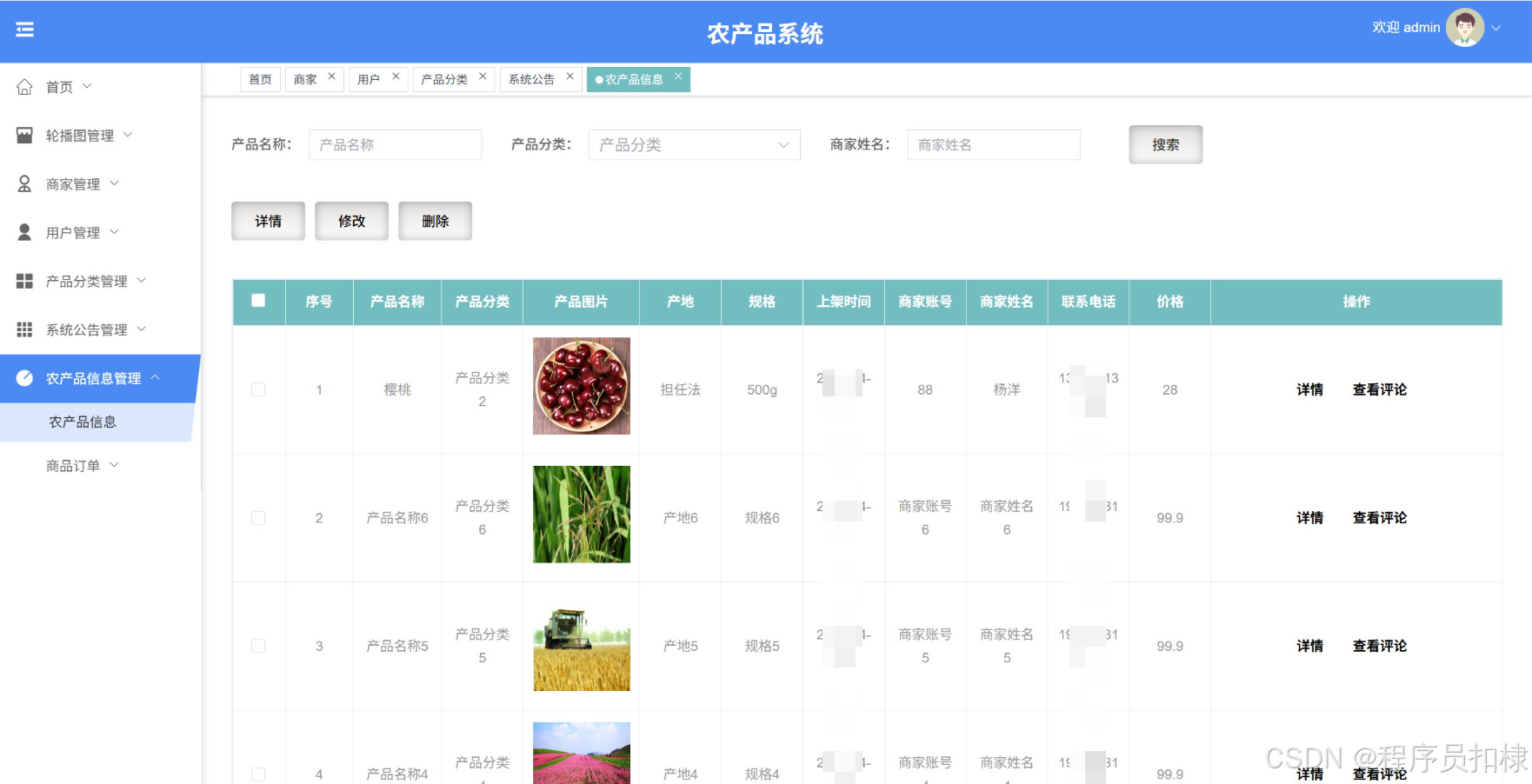 农产品信息管理:查看、修改、删除、查看评论农产品信息。
