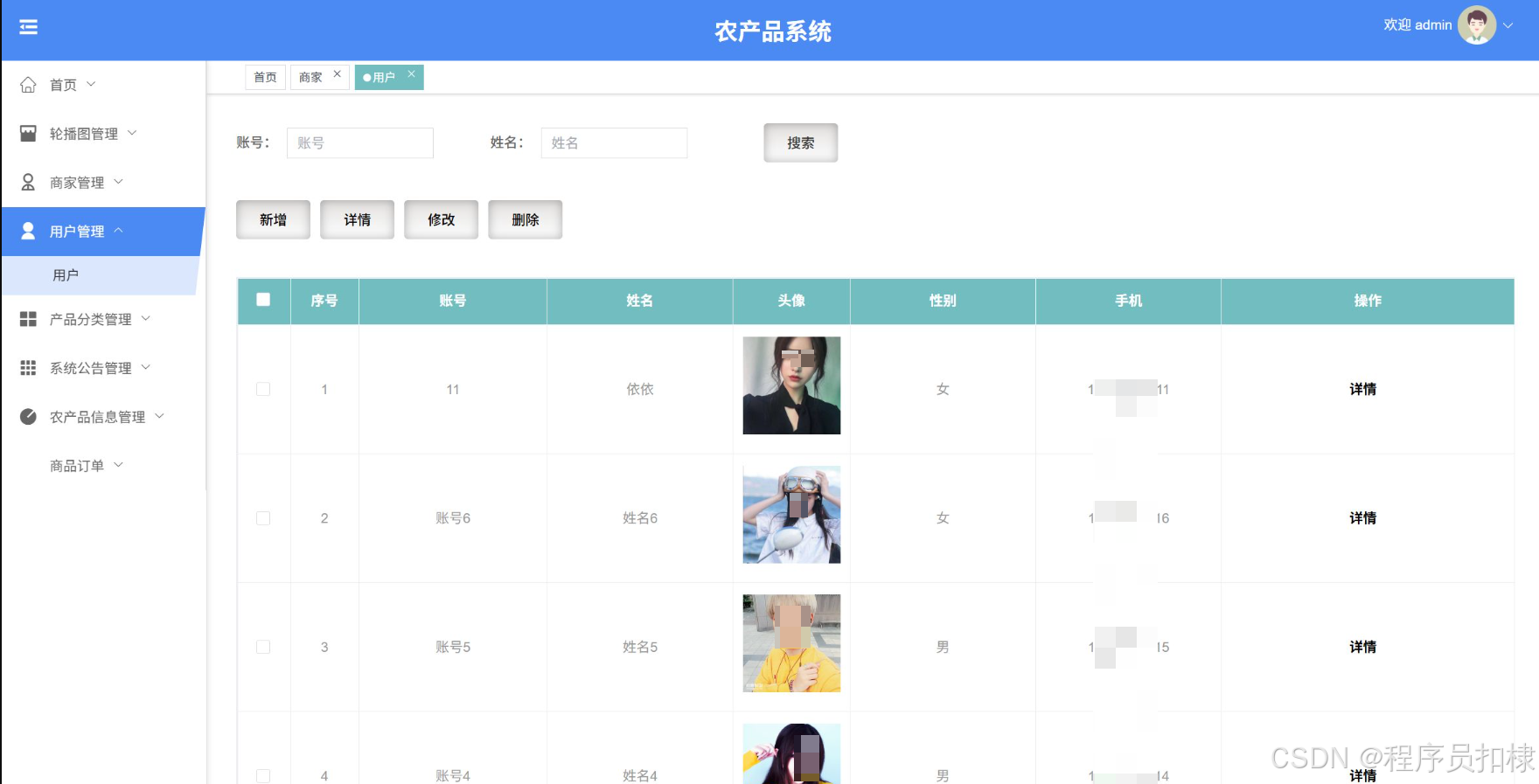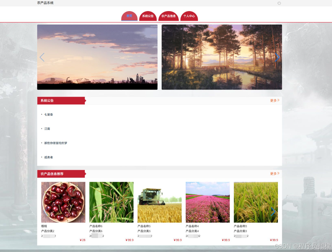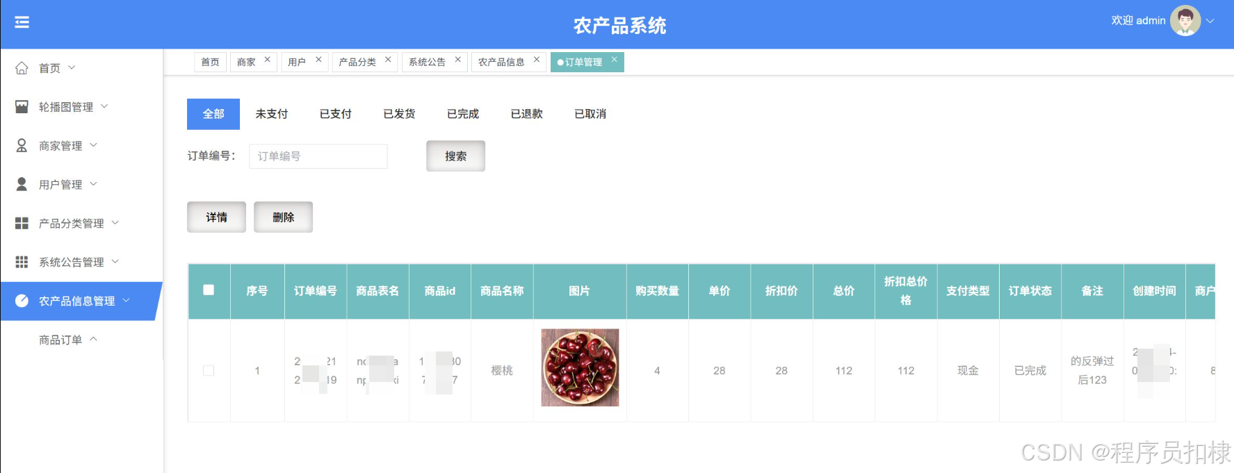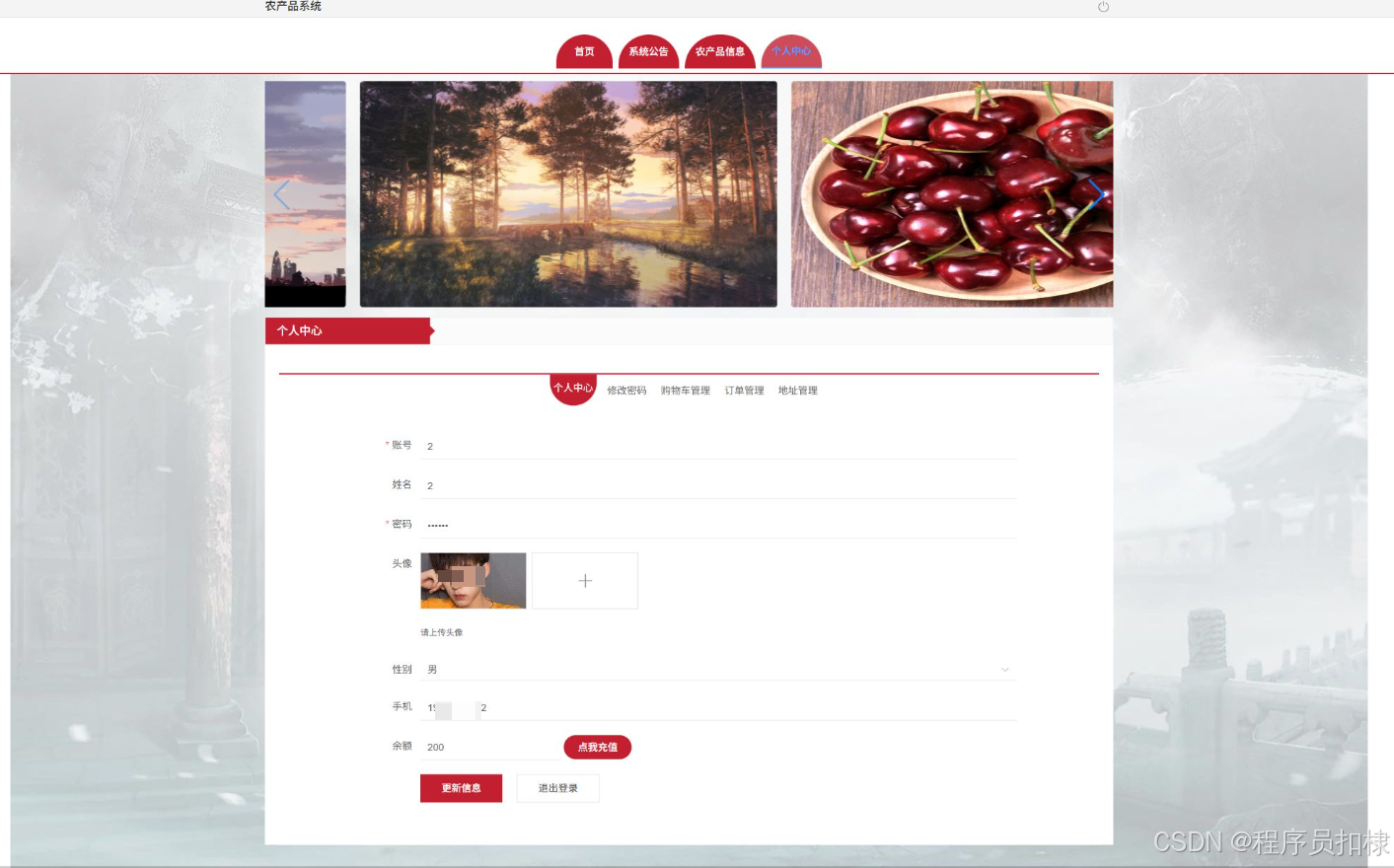农产品信息管理:查看、修改、删除、查看评论农产品信息。