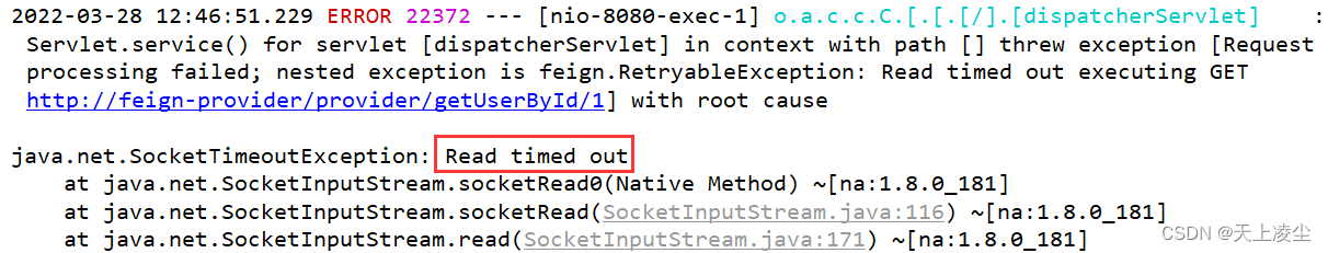 feign的默认超时时间为1s,这里使线程睡眠2s来模拟超时