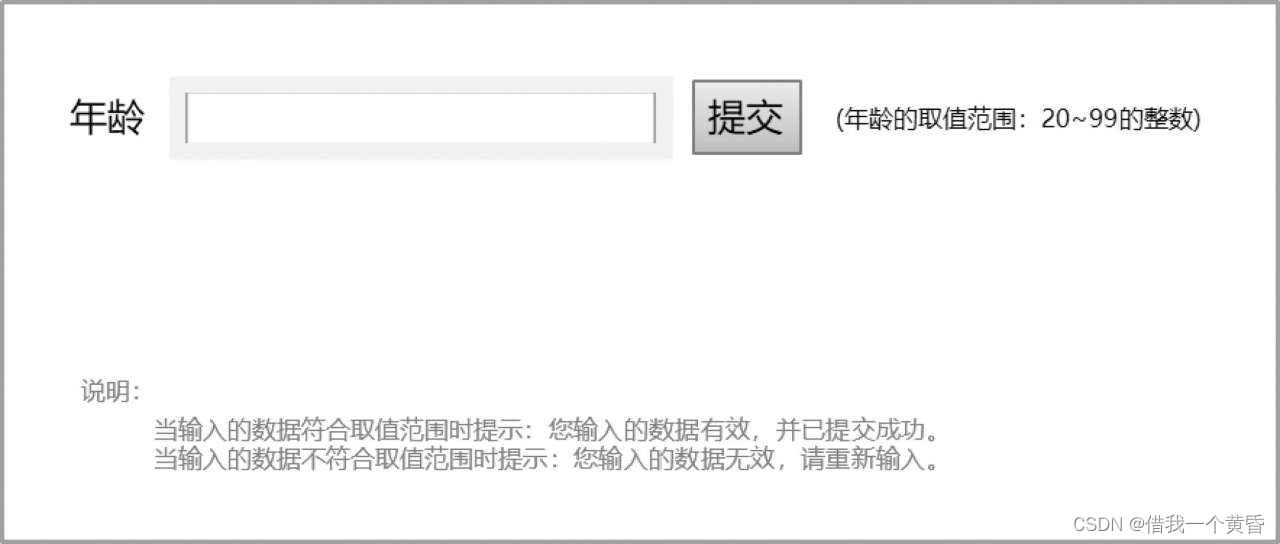 输入条件20~99的整数,才能提交成功;如果输入其他以外的则不会提交成功。