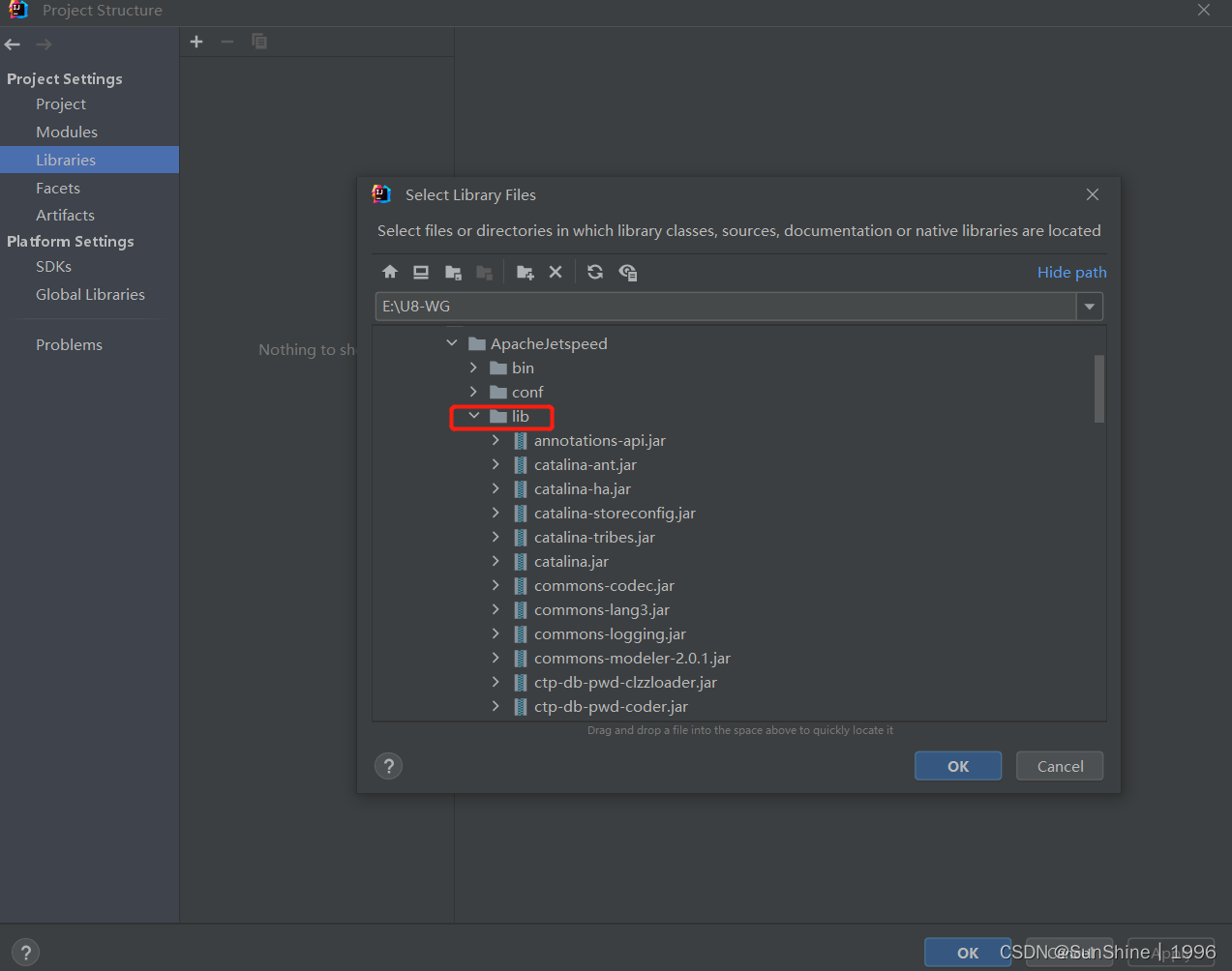 2.引入需要的第三方库,选择lib目录中的jar包,点击OK。