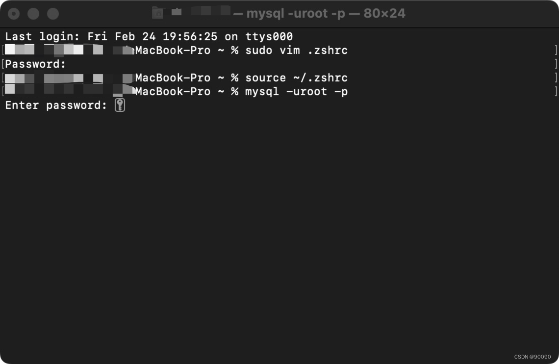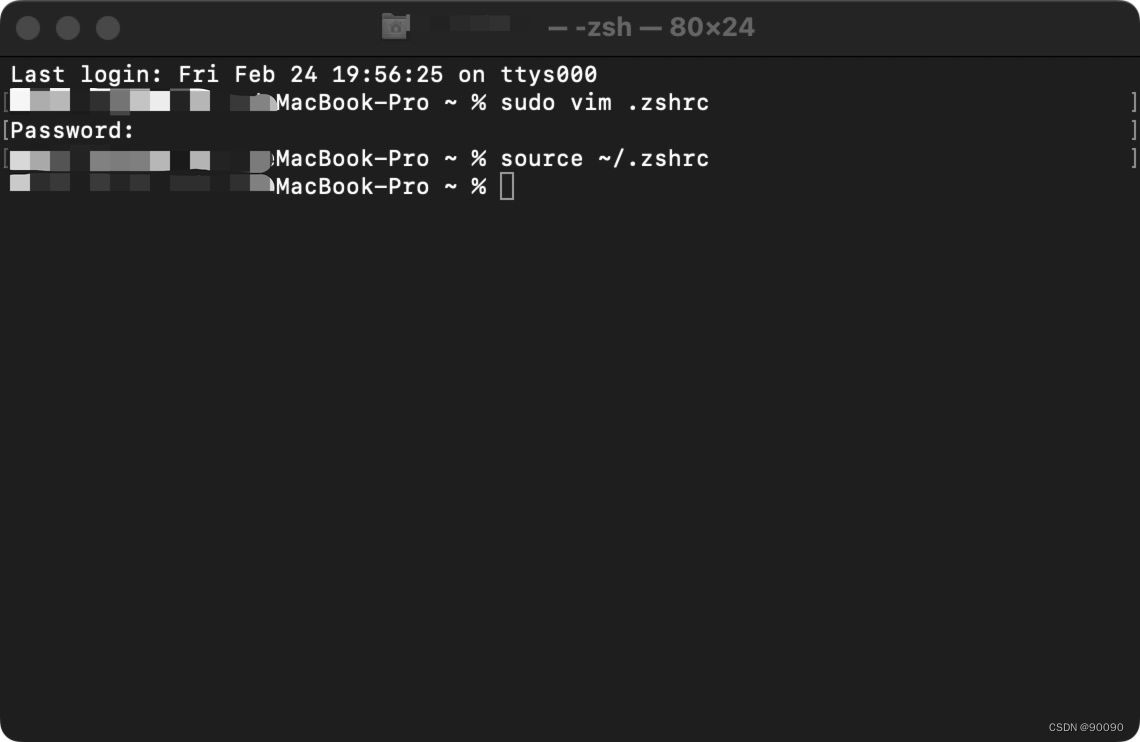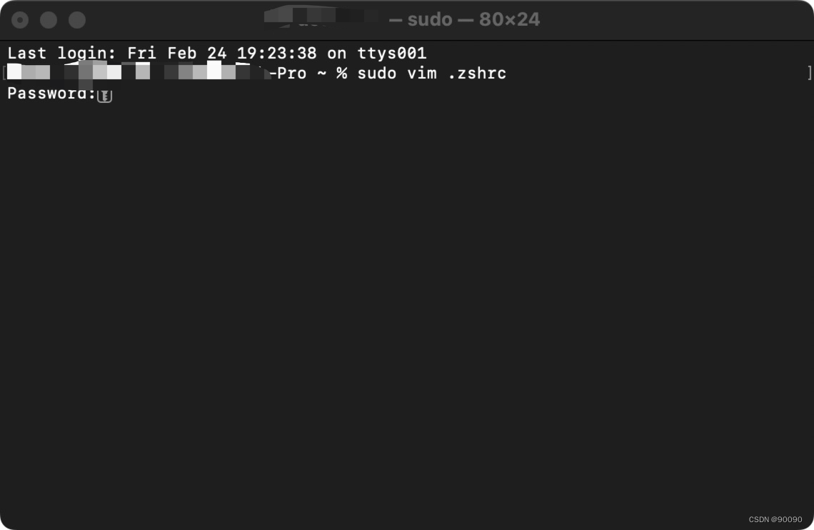 出现需要输入密码的password提示(密码为自己电脑的解锁密码)(密码为隐藏式输入,输入好后回车)