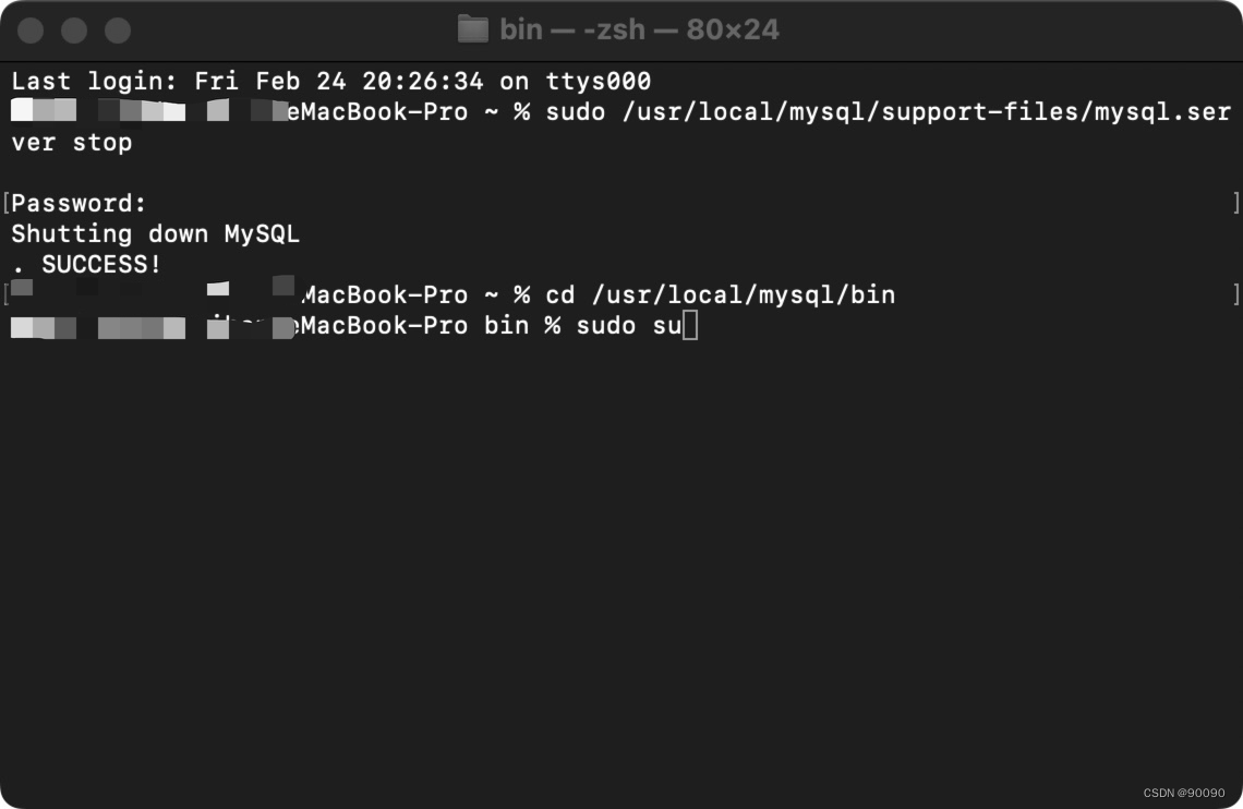 “sudo /usr/local/mysql/support-files/mysql.server stop”