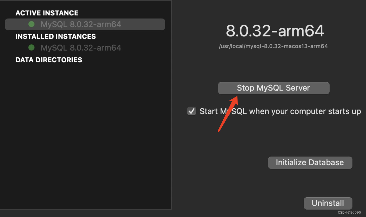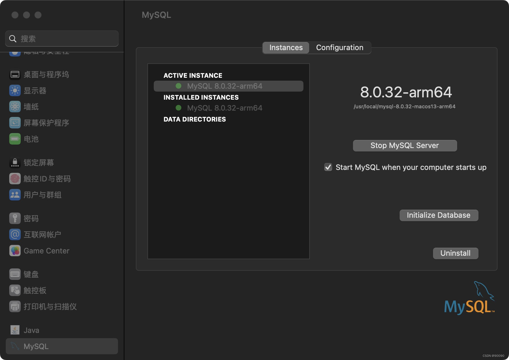 第一步 进入系统设置,点击 stop mysql server,如果按钮无法关闭,则进入终端,输入