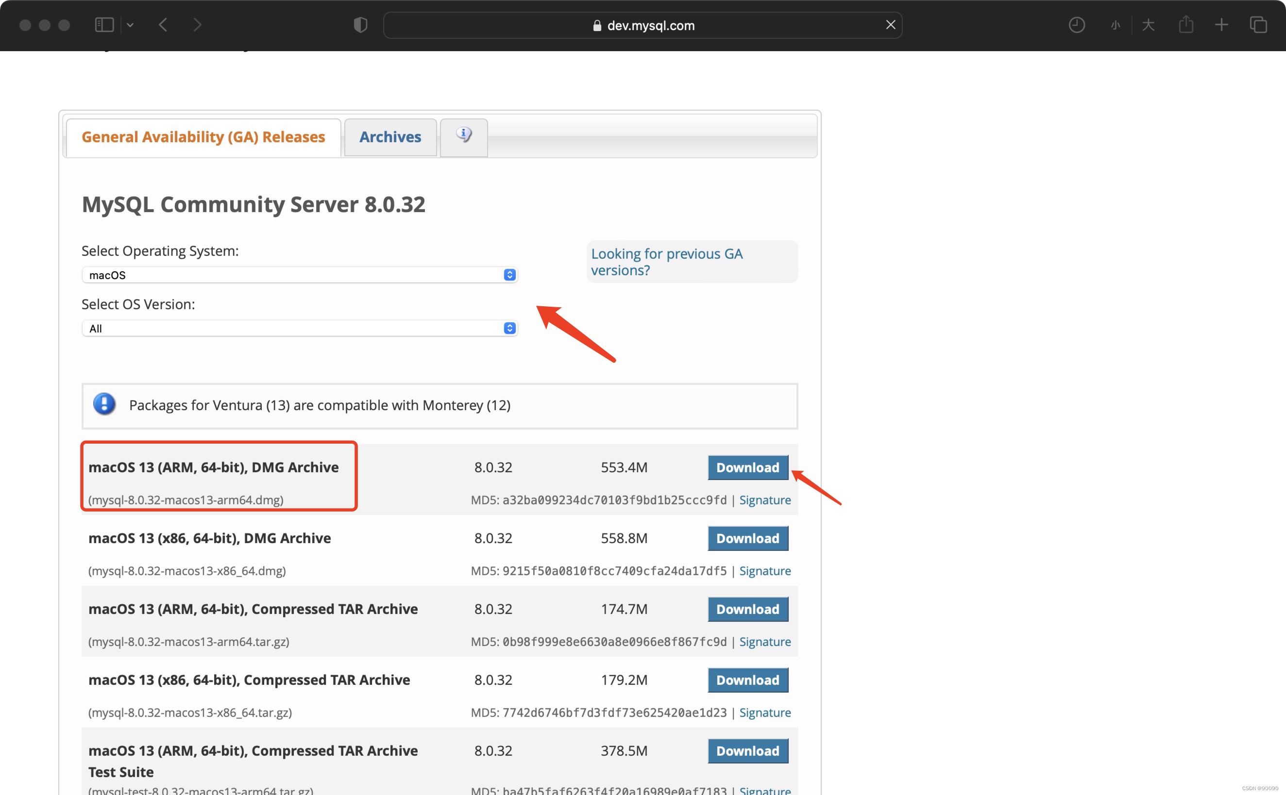 第四步 选择版本与下载(M1芯片选择arm64版本)。