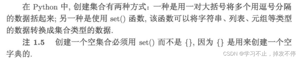 集合无序排列且不重复,集合和字典都是无序集合体。