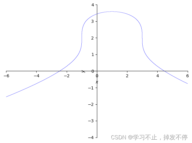 pt(Eq((x-1)**2 + (y-2)**3,4),(x,-6,6),(y,-4,4),xlabel = '$x$',ylabel = '$y$')