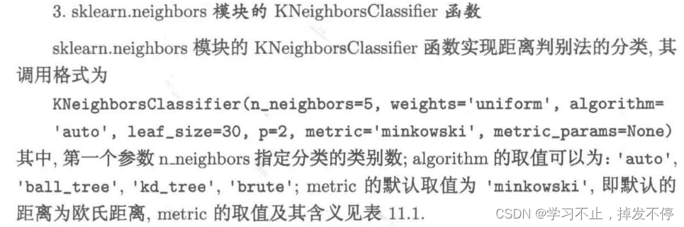 knn=KNeighborsClassifier(3,metric='mahalanobis',metric_params={'V': v}) #马氏距离分类