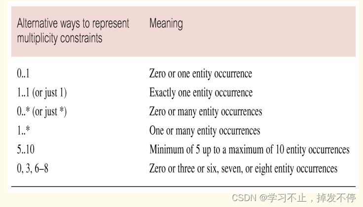 Cardinality: Cardinality[基数] is a constraint[限制] on a relationship specifying the number of entity instances that a specific entity may be related to via the relationship.