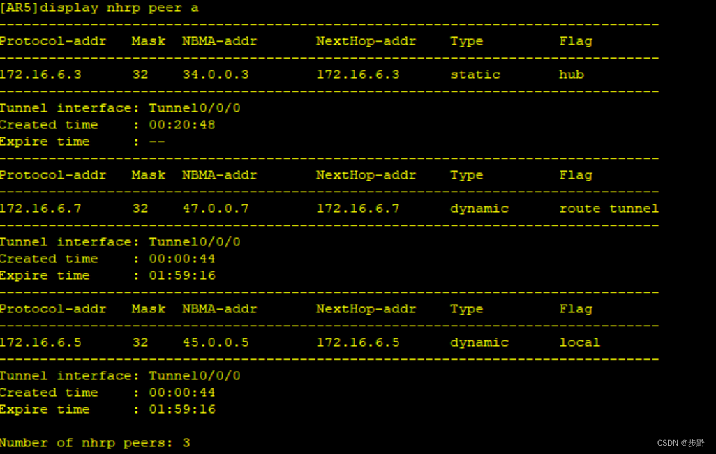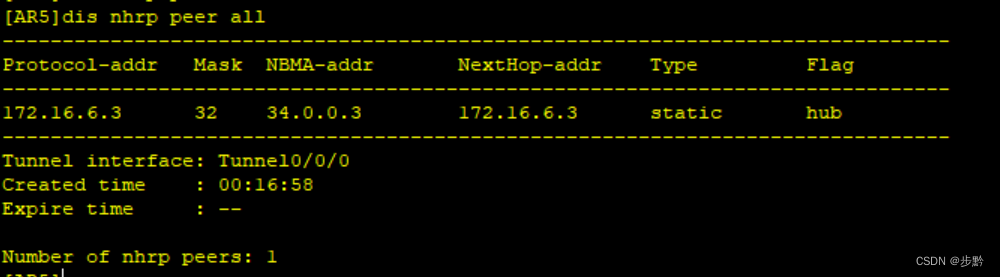 [AR5-Tunnel0/0/0]nhrp entry 172.16.6.3 34.0.0.3 register